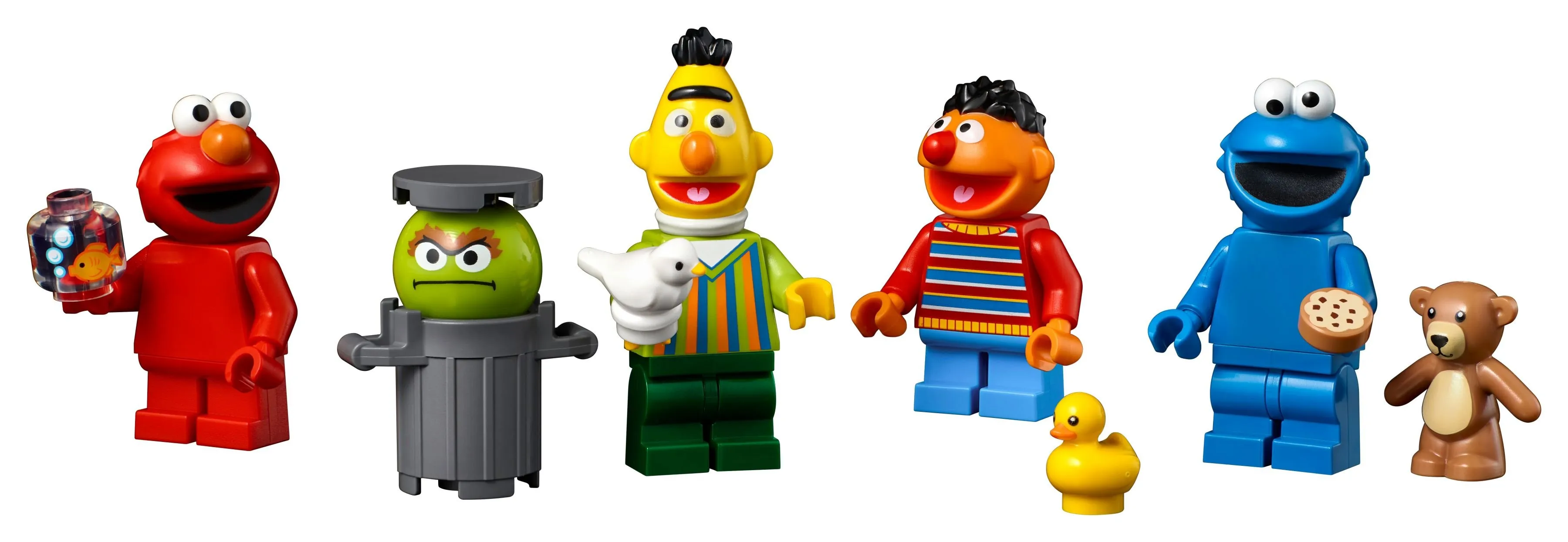 Этот набор включает в себя дом на Улице Сезам с детально проработанными интерьерами и множеством узнаваемых элементов. Вы сможете собрать квартиру Эрни и Берта, с их любимыми предметами — ванну, резиновую уточку и даже коробку с печеньем!