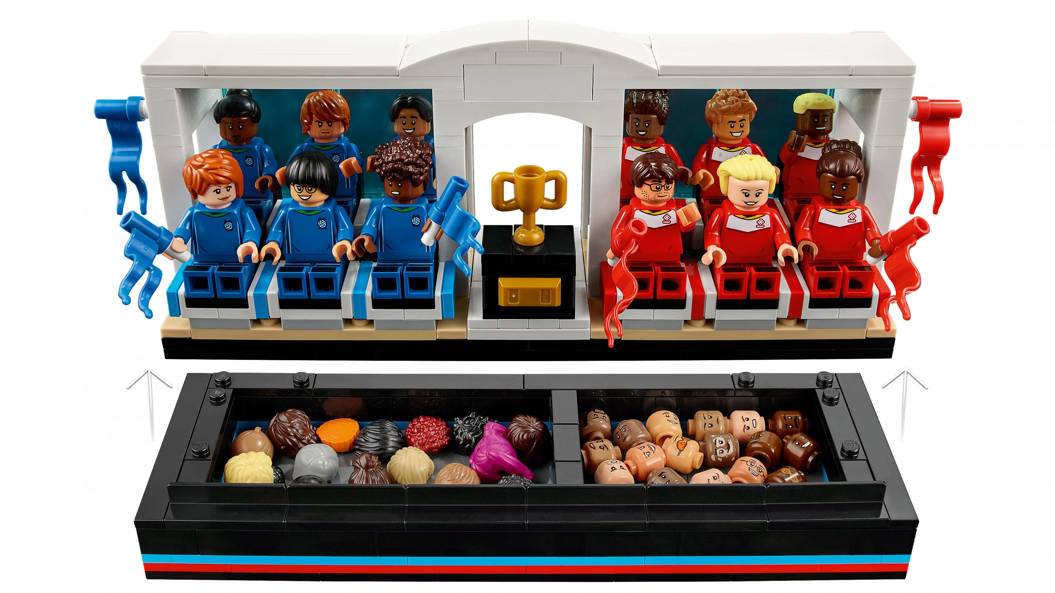 В наборе LEGO Ideas 21337 Настольный футбол вы найдете все необходимые элементы для сборки полноценного настольного футбола. Конструктор состоит из более чем 2300 деталей, которые позволяют воссоздать игровое поле с реалистичными деталями, включая ворота, разметку и трибуны для зрителей.