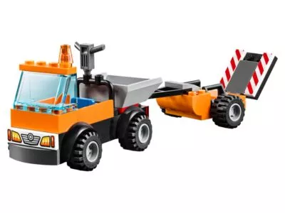 С помощью набора “Грузовик дорожной службы” ты будешь незаменим в своем Лего-городе. Как же устроена работа в дорожной службе? Люди сообщают о неисправностях в коммунальные службы как только случается аварийная ситуация. В диспетчерской раздается сигнал и сотрудник вынужден выезжать на специально оснащенном грузовике с сигнальными огнями на место поломки. Если нужно отремонтировать поврежденный участок дороги, то для этого имеется специальный прицеп с бетономешалкой. Перед строительной операцией следует отделить место ремонта ограждениями с указателями.