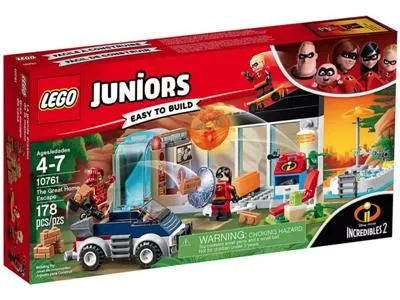 Fördere die Fantasie deines Kindes und wecke die Begeisterung für LEGO Juniors Die Unglaublichen 2 – mit dem tollen Set Die große Flucht. Dieses spannende Set enthält eine Hausfassade mit einfacher Wand und Grundplatte, einen beweglichen Kamin mit geheimem Bedienfeld, einen Wasserfall mit Einsperr-Funktion, einen Pool-Bereich, einen Sessel mit Katapult-Funktion sowie ein baubares Auto mit einfacher Karosserie und herausnehmbarem Katapult. Dieses Unterhaltungsspielzeug für Kinder enthält außerdem eine einfache Bau- und Spielanleitung, die das Selbstvertrauen von Kindern im Alter von 4–5 Jahren stärkt. Enthält 3 Minifiguren und eine Baby-Figur.