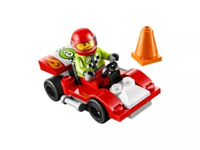 Steig in den LEGO Juniors Rennwagen und dreh schnelle Runden auf der Rennstrecke! Fahr schneller als alle anderen, um das Rennen zu gewinnen. Enthält einen orangen Kegel und eine Rennfahrer-Minifigur.