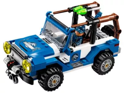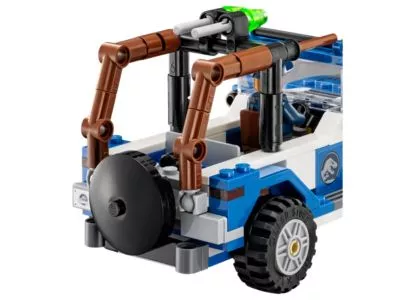 Vorsicht! Gray hat sich im Park verlaufen und versucht in einer durchsichtigen Rollkugel einem Dilophosaurus zu entkommen. Begleite den ACU-Ranger im klassischen Jurassic World Geländewagen auf seine Rettungsmission. Benutze das Fernglas, um den wütenden Dinosaurier zu erspähen und verwende dann das Funkgerät, um Verstärkung anzufordern. Weiche dem Schnappkiefer aus und benutze den Greifzug, um seine Beine zu umwickeln. Bring den Dino zu Fall, bevor er hinten auf den Geländewagen springen und die Spreng-Funktion aktivieren kann. Enthält 2 Minifiguren mit Ausrüstung und Zubehör: Gray und einen ACU-Ranger.