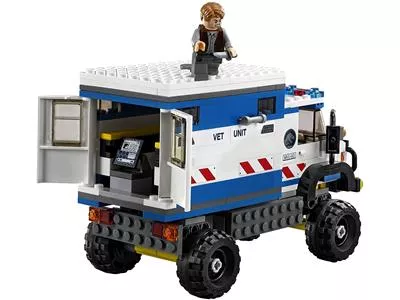 Pass auf! Der Tierrettungs-Truck wird von Blue und Charlie, zwei räuberischen Raptoren, angegriffen. Düse mit dem hochmotorisierten Fahrzeug los, um den Attacken auszuweichen. Begleite Owen auf dem Motorrad, um die Dinsosaurier abzulenken und locke sie mit einer Leuchtkugel weg. Feuere den drehbaren Shooter auf dem Dach ab, um die Raptoren abzuwehren und lass sie mit dem Betäubungsgewehr des ACU-Rangers sanft einschlummern. Enthält 3 Minifiguren mit Ausrüstung und passendem Zubehör: einen ACU-Ranger, Owen und Claire.