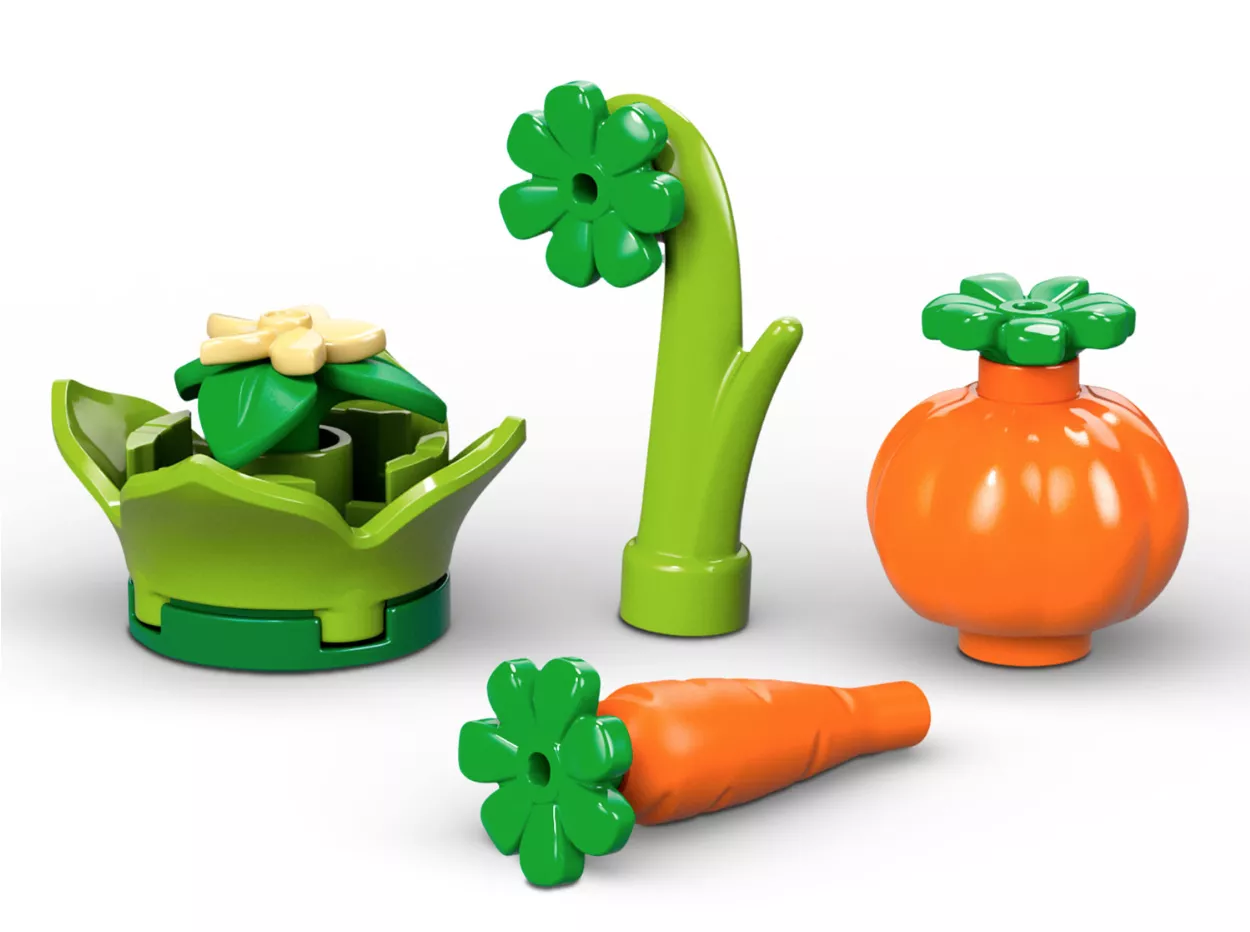 • Конструктор «Малыш Бампи: анкилозавр» включает в себя фигурку динозавра анкилозавра из анимационного телешоу «Мир Юрского периода: Лагерь мелового периода», а также 4 фигурки овощей для ролевых игр и создания сюжетов.