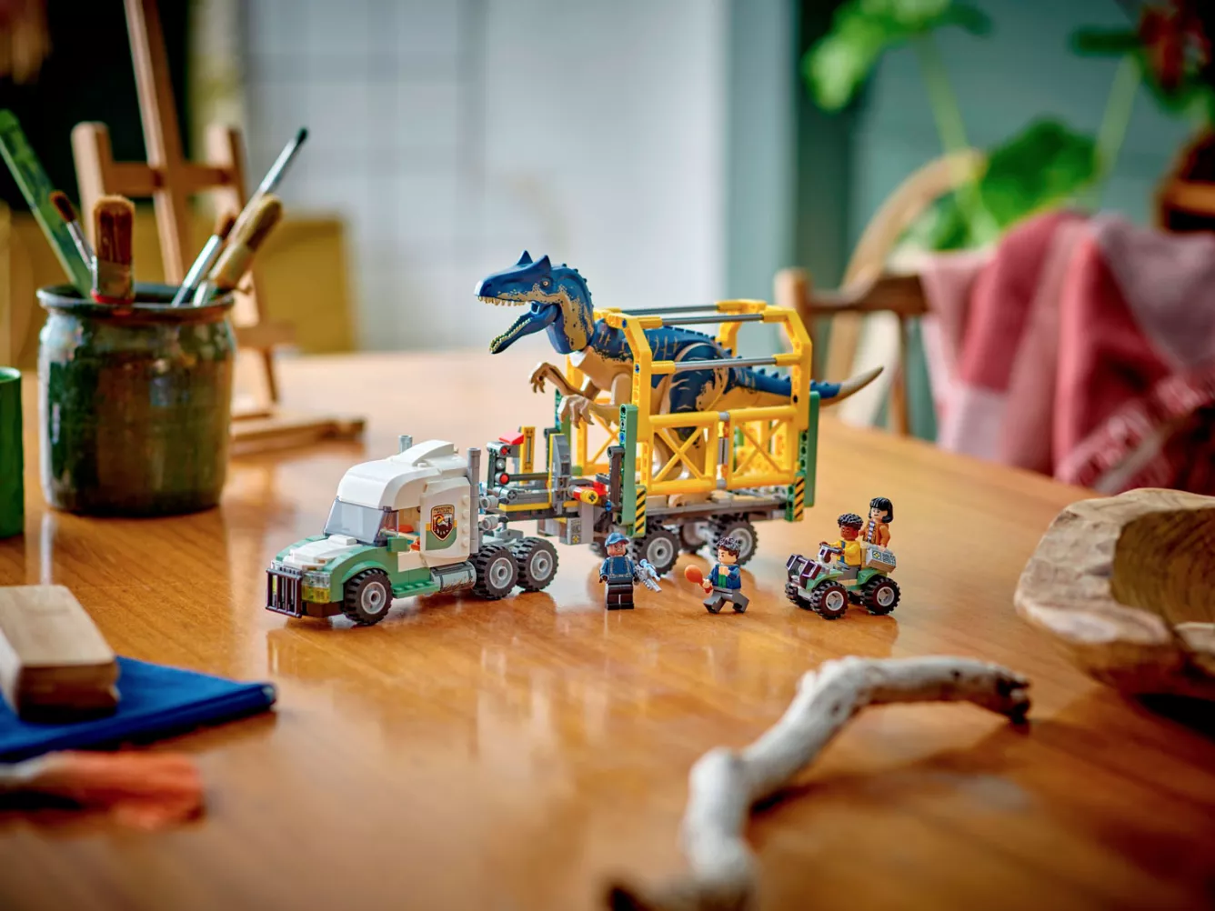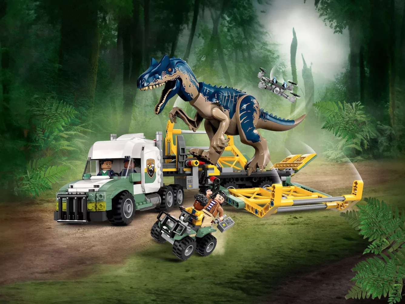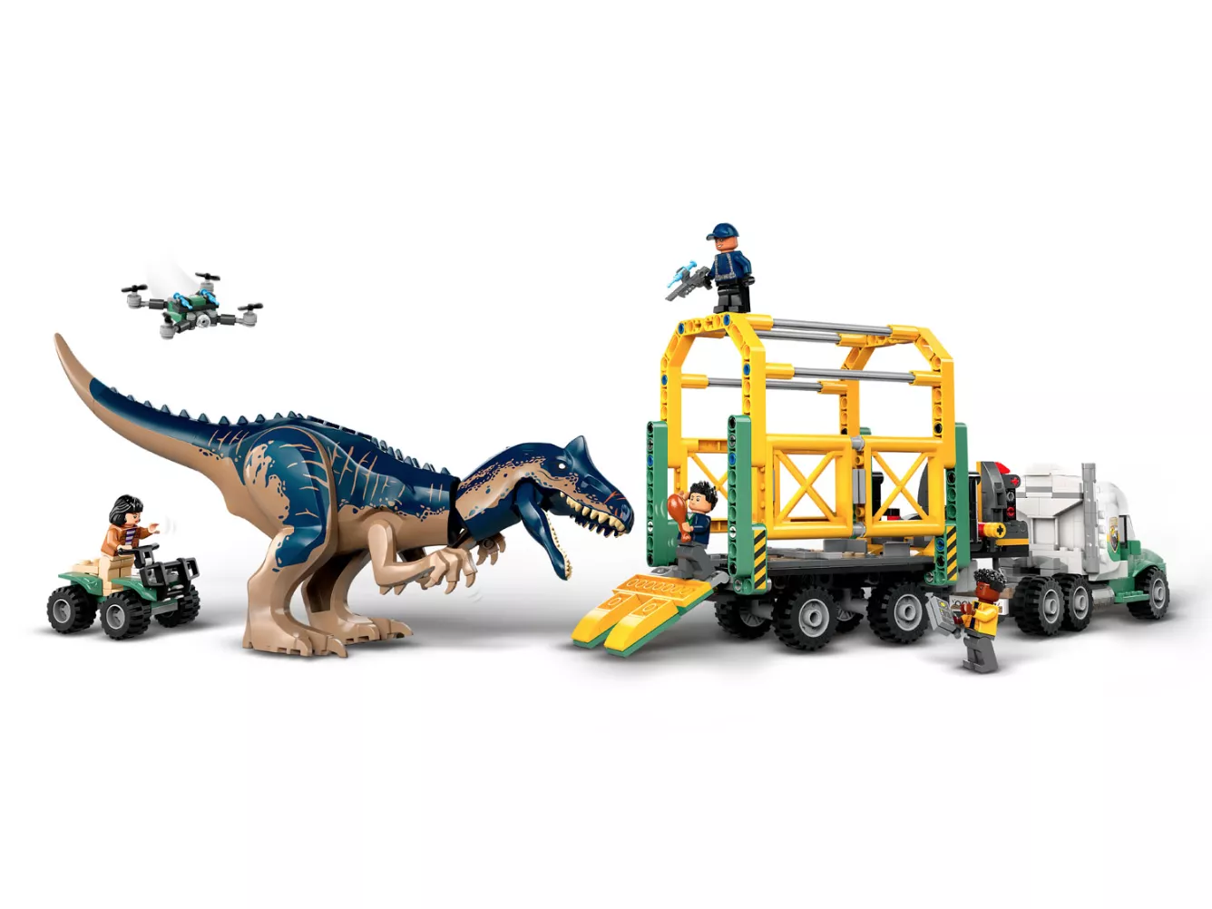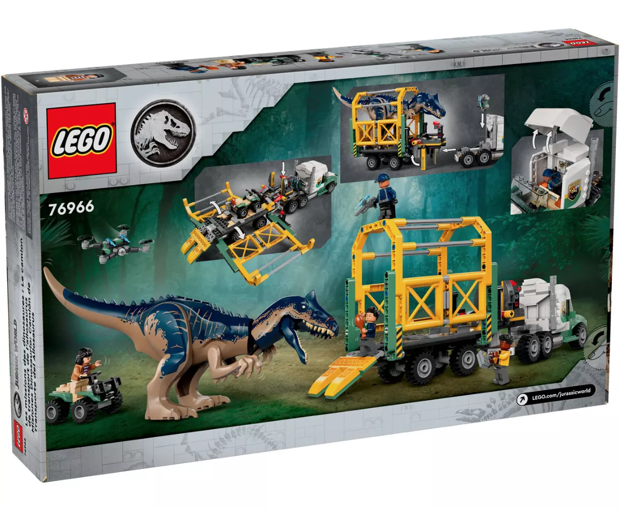 Главной частью набора является большой транспортный грузовик, специально предназначенный для перевозки крупного динозавра. Грузовик оснащен крепкой клеткой, чтобы обезопасить экипаж от агрессивного Аллозавра. Помимо этого, в комплекте есть минифигурки персонажей, готовых выполнить сложную миссию по захвату этого динозавра.