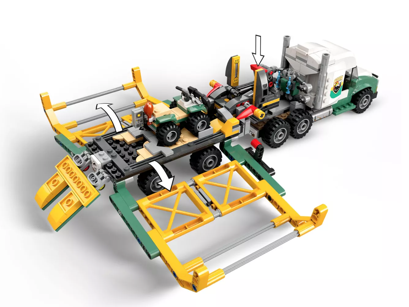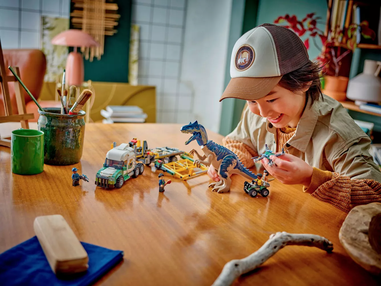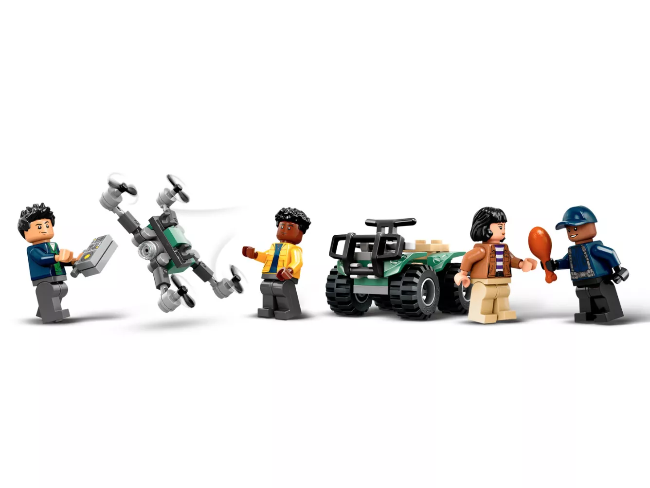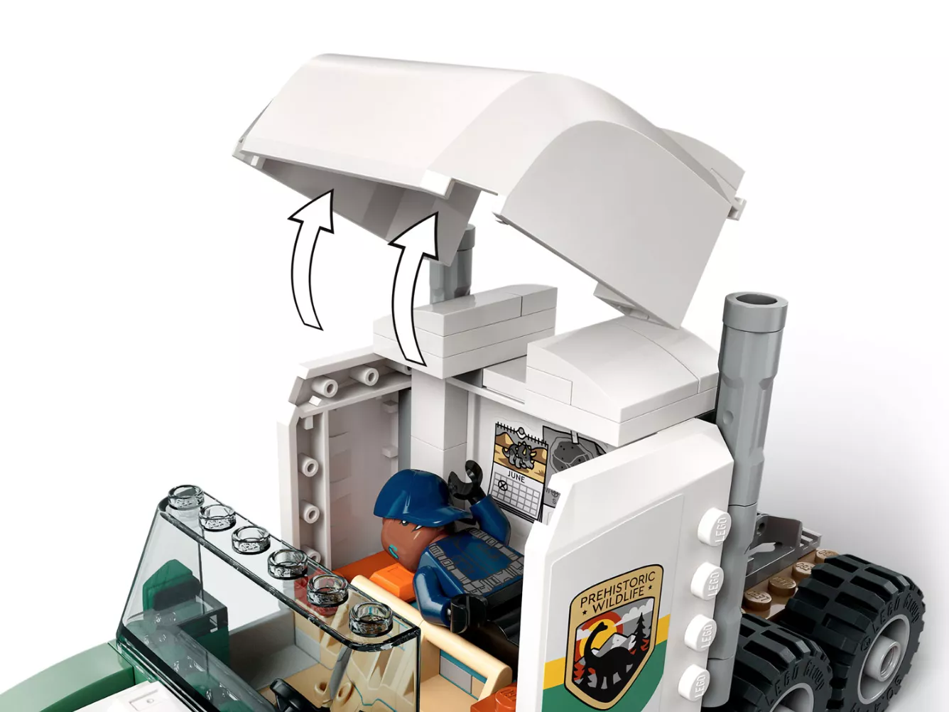 Главной частью набора является большой транспортный грузовик, специально предназначенный для перевозки крупного динозавра. Грузовик оснащен крепкой клеткой, чтобы обезопасить экипаж от агрессивного Аллозавра. Помимо этого, в комплекте есть минифигурки персонажей, готовых выполнить сложную миссию по захвату этого динозавра.