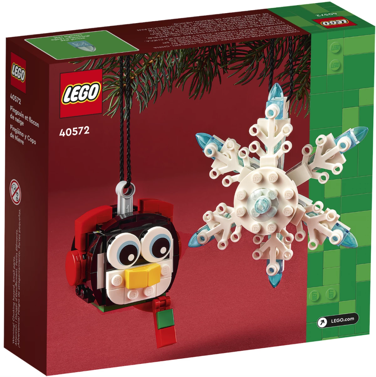 В наборе LEGO Коллекционные наборы 40572 Пингвин и снежинка орнамент представлены два подвесных украшения – милый пингвин и снежинка, которые можно использовать для декорирования елки или любой другой праздничной зоны. Эти украшения, созданные из ярких и детализированных деталей LEGO, добавят уюта и радости вашему дому в праздничный сезон.