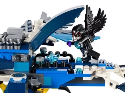 Der Adlerstamm muss gewarnt werden! Die Raben Razar und Rizzo haben sich des Adlerstamm-CHIs bemächtigt und sind im Begriff, mit dem geflügelten Rabengleiter zu entkommen! Starte Eris' Adlerjäger und lege den fiesen Raben das Handwerk! Starte die Abwehr aus der Luft! Mit coolem Adler-Schnabel, beweglichen Flügeln und Beinen, Greifklauen und Schwanz! Nimm die coole Abwehrsposition ein und feuere die Raketen ab, um die Banditen aufzuhalten, oder nimm sie gefangen und sperre sie in das Gefängnis anBord! Notfalls kannst du auch den Schleudersitz auslösen und der Situation ganz leicht entkommen! Enthält 3 Minifiguren sowie passende Waffen.