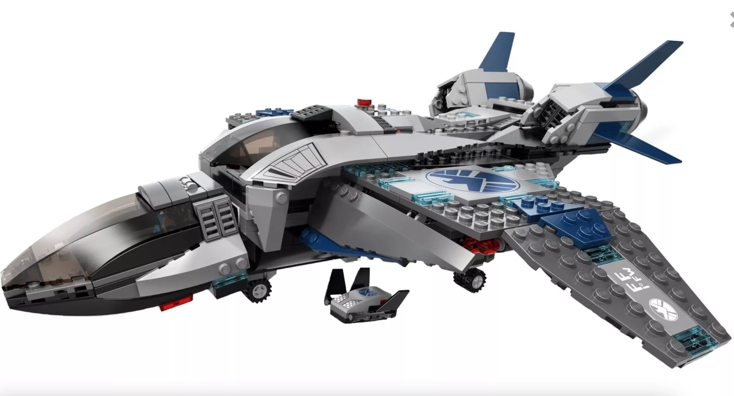 Под крыльями расположены ракетницы и отстыковочные летательные панели для неумеющих летать Мстителей.