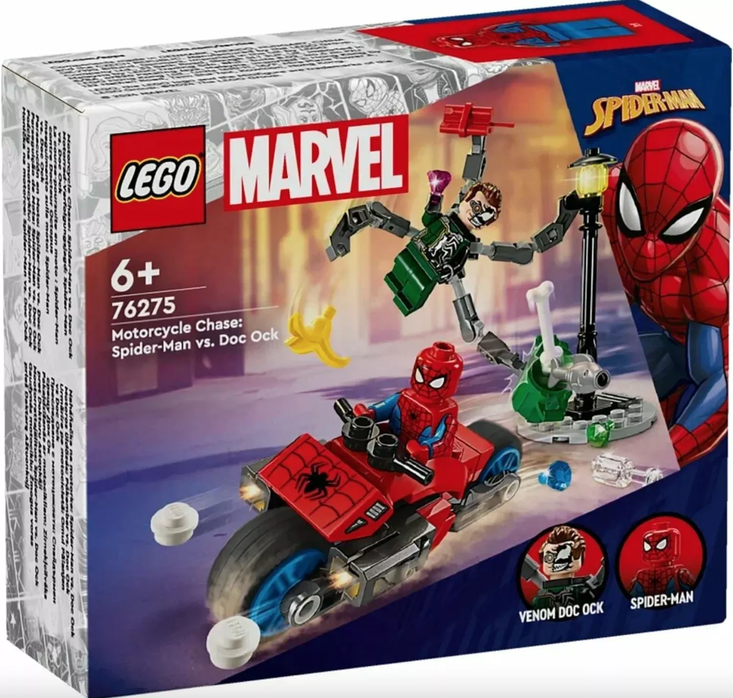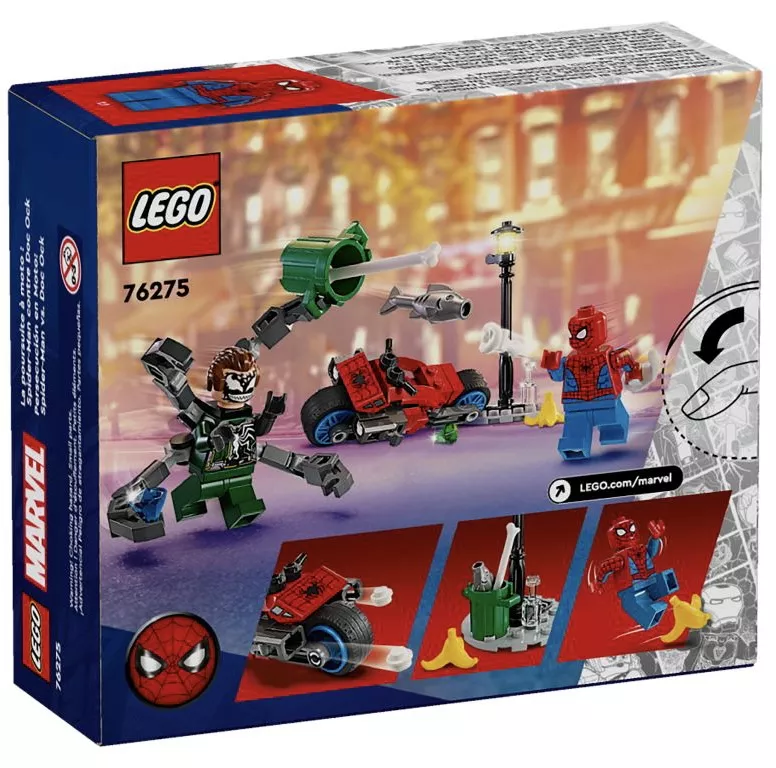 Набор LEGO Marvel Super Heroes 76275 Погоня на мотоцикле не только предоставит вам и вашим детям замечательную возможность вместе собирать и играть, но и станет великолепным подарком на любой праздник для фанатов Marvel всех возрастов. Отправляйтесь в незабываемое приключение, где Человек-паук и Док Ок оживут прямо у вас дома!