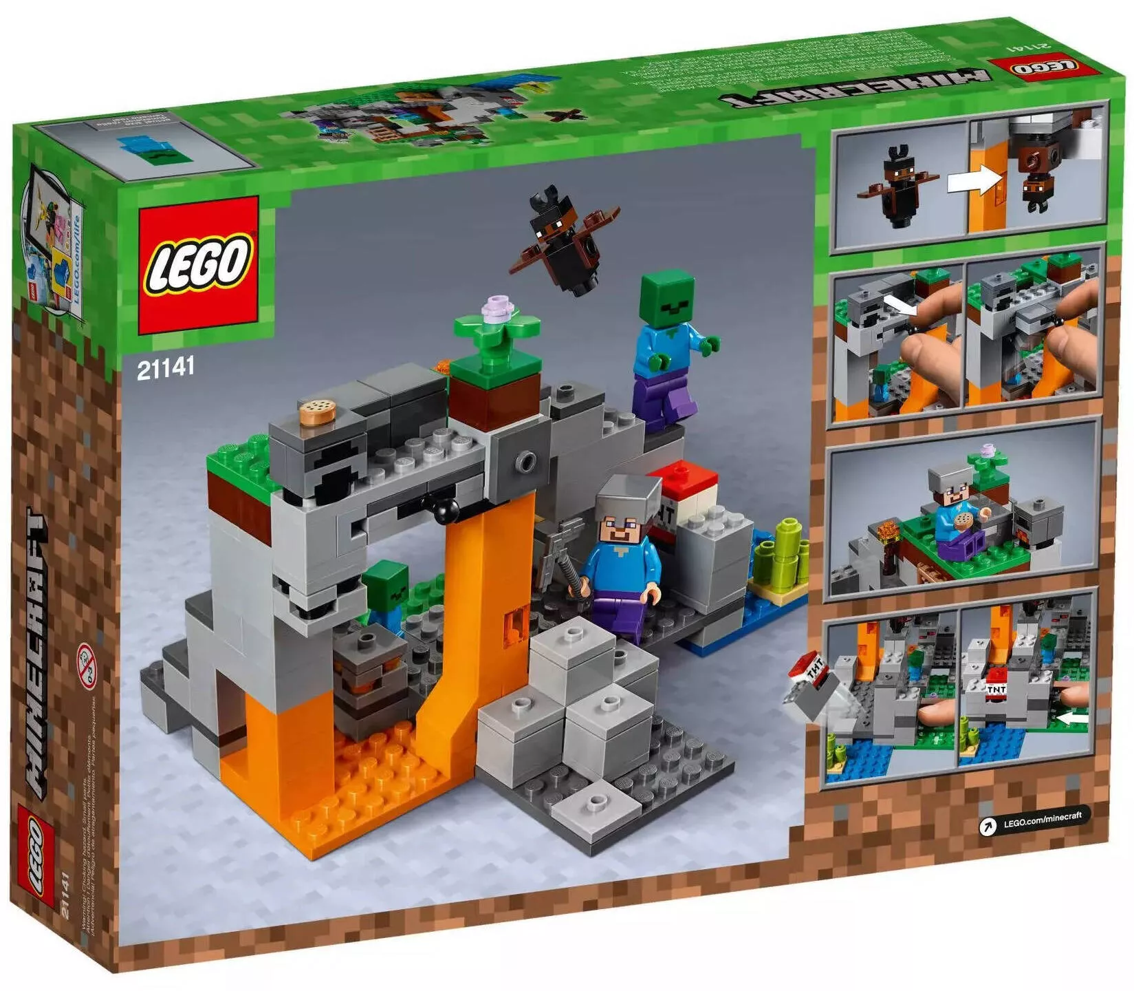 Набор LEGO Minecraft 21141 Пещера зомби включает в себя все необходимые элементы для построения реалистичной пещеры, где главными героями являются Стив и зомби. В этой пещере вас ждут драгоценные ресурсы, ловушки и множество опасностей, как в настоящей игре.