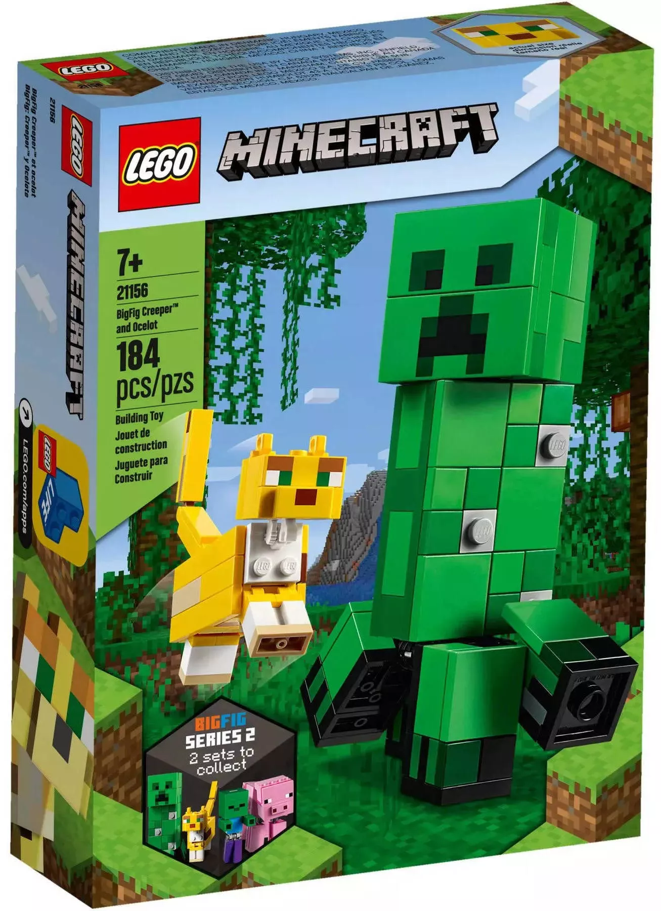 Набор LEGO Minecraft 21156 Крипер и Оцелот включает в себя 184 детали и предлагает множество возможностей для игры и воображения. Основные элементы этого набора: