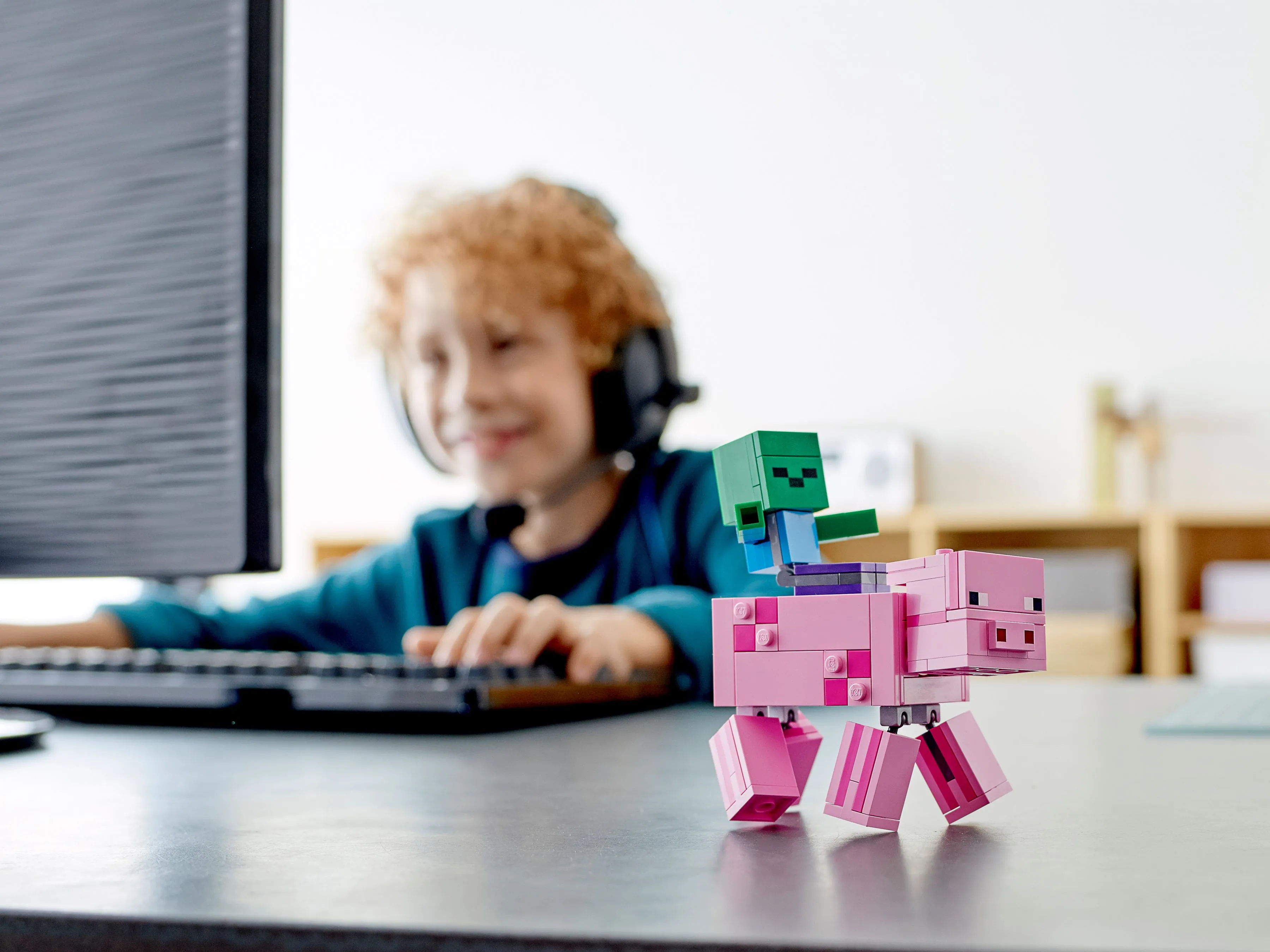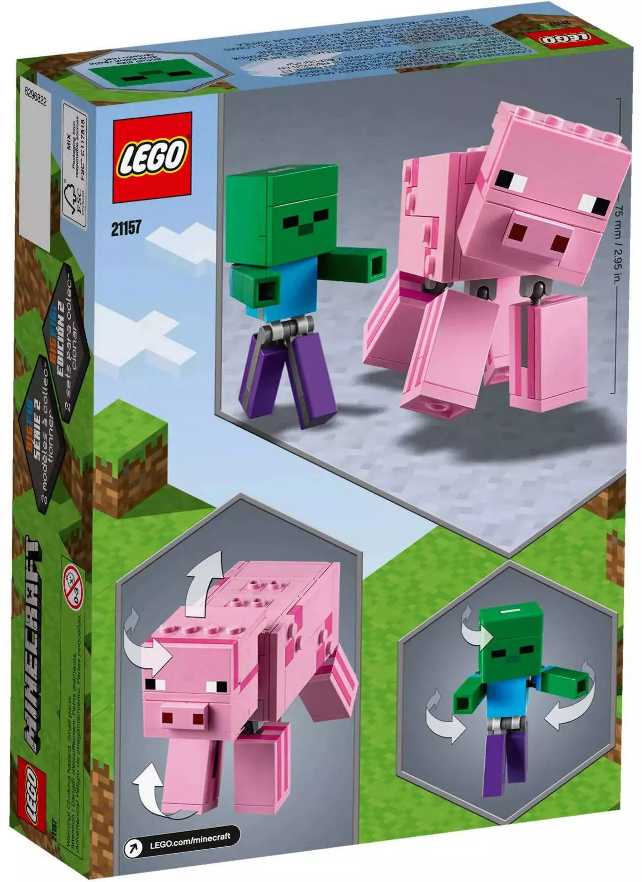 Набор LEGO Minecraft 21157 Свинья и Зомби-ребёнок позволяет юным фанатам Minecraft принести часть увлекательного мира в реальность, добавив к своей коллекции LEGO этих забавных персонажей.