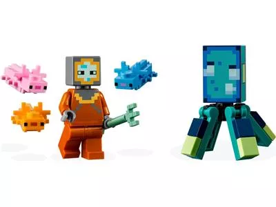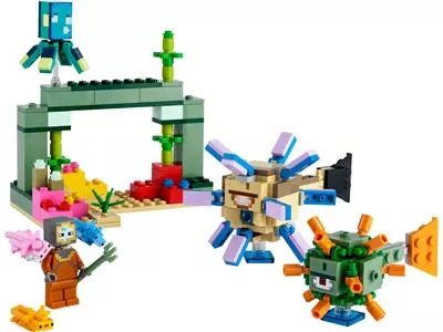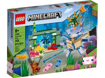 «Битва со стражем» LEGO Minecraft (21180) отправляет игроков в возрасте от 8 лет в подводное приключение, где их ждет множество знакомых персонажей и функций из хитовой игры. Океан удовольствия для игроков в Minecraft. В этом увлекательном подводном приключении Minecraft детей ждет множество испытаний. Первым делом они должны построить монумент на красочном коралловом рифе. Там их ждут спрятанные сокровища, а также два знакомых моба из Minecraft: страж и старший страж. Враги намерены помешать им, но дети, вооружившись трезубцем и заручившись помощью трех аксолотлей, должны отбиться от противников и продолжить свою экспедицию. Дополнительная опасность исходит от шутера с пружинным механизмом, который выстреливает лазерной ракетой по щелчку хвоста старшего стража. Это приключение из кубиков LEGO с бесконечными возможностями для творческой игры открывает для детей захватывающее веселье игры в Minecraft.
