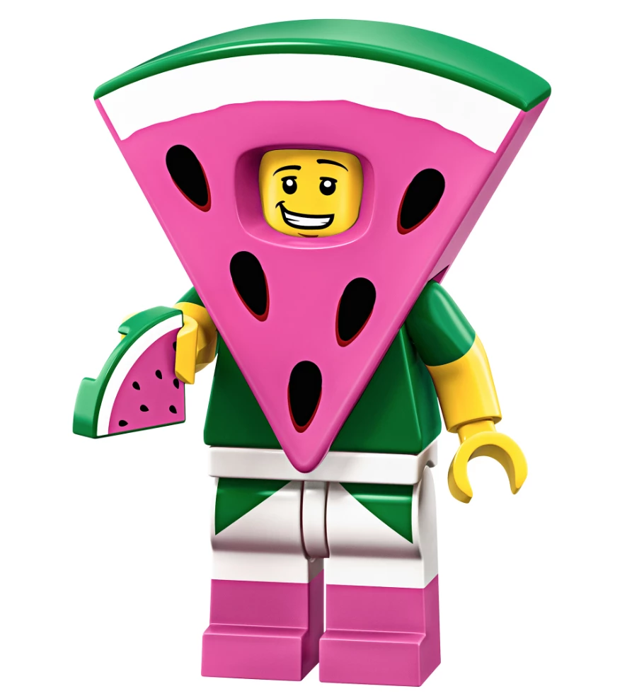 В продаже именно одна минифигурка 71023-8 Парень в костюме арбуза из серии LEGO Minifigures 71023.