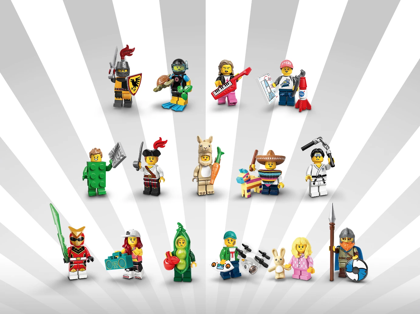 LEGO Minifigures 71027 Серия 20 – это юбилейная коллекция минифигурок, выпущенная в честь 10-летия линейки LEGO Minifigures. В этой серии представлены 16 новых, тщательно продуманных персонажей, каждый из которых сопровождается уникальными аксессуарами. Каждая минифигурка в отдельной упаковке добавляет элемент неожиданности и радость от поиска любимых героев.