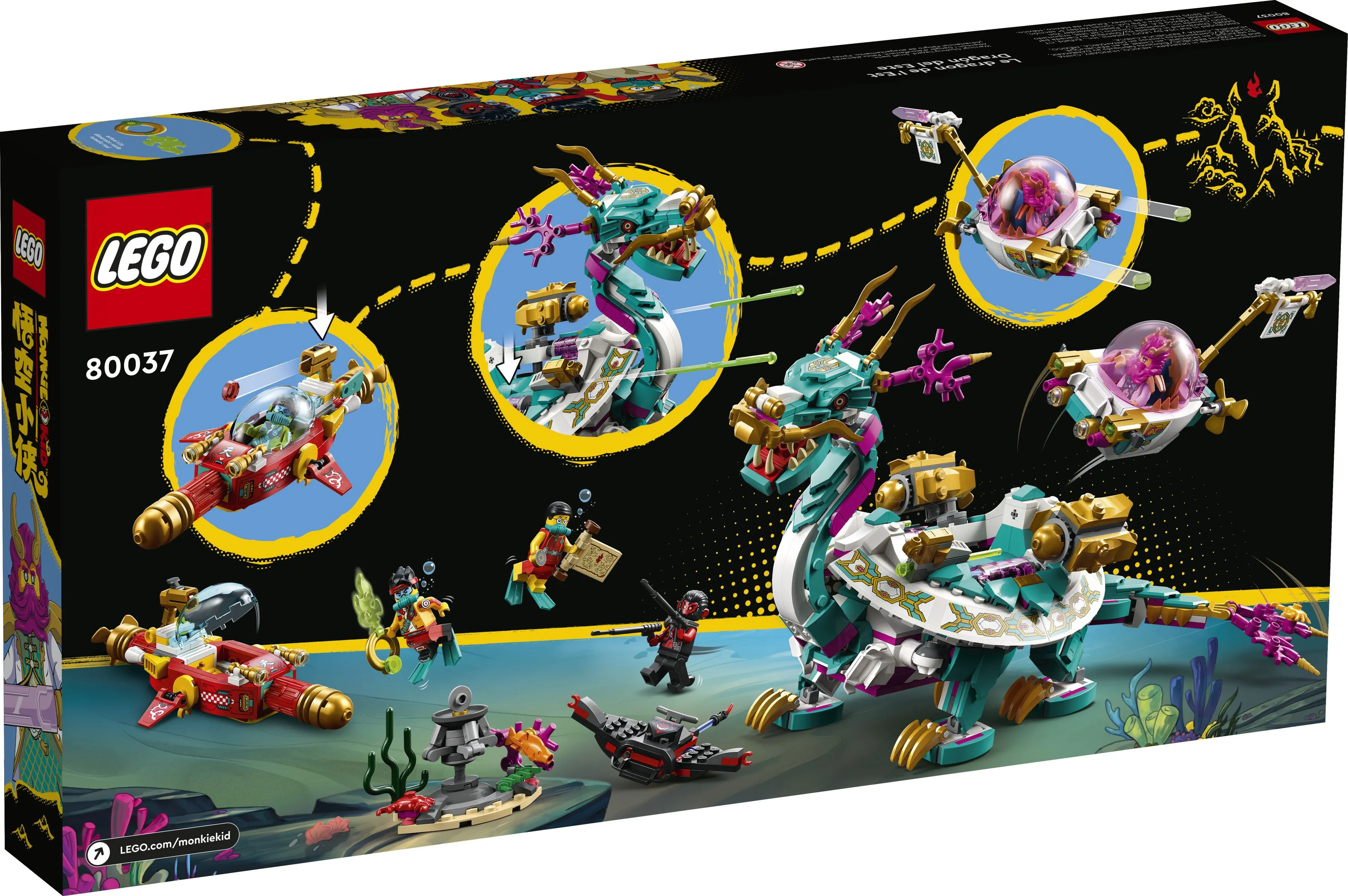 LEGO Monkie Kid 80037 Дракон Востока — это потрясающий набор, который переносит детей в эпические приключения мира Monkie Kid, вдохновлённые древними китайскими легендами. В наборе представлен величественный Дракон Востока, готовый к сражению и защите водных царств. Этот набор позволяет детям собрать детализированную модель дракона с подвижными элементами, а также разыгрывать захватывающие битвы между героями и злодеями.