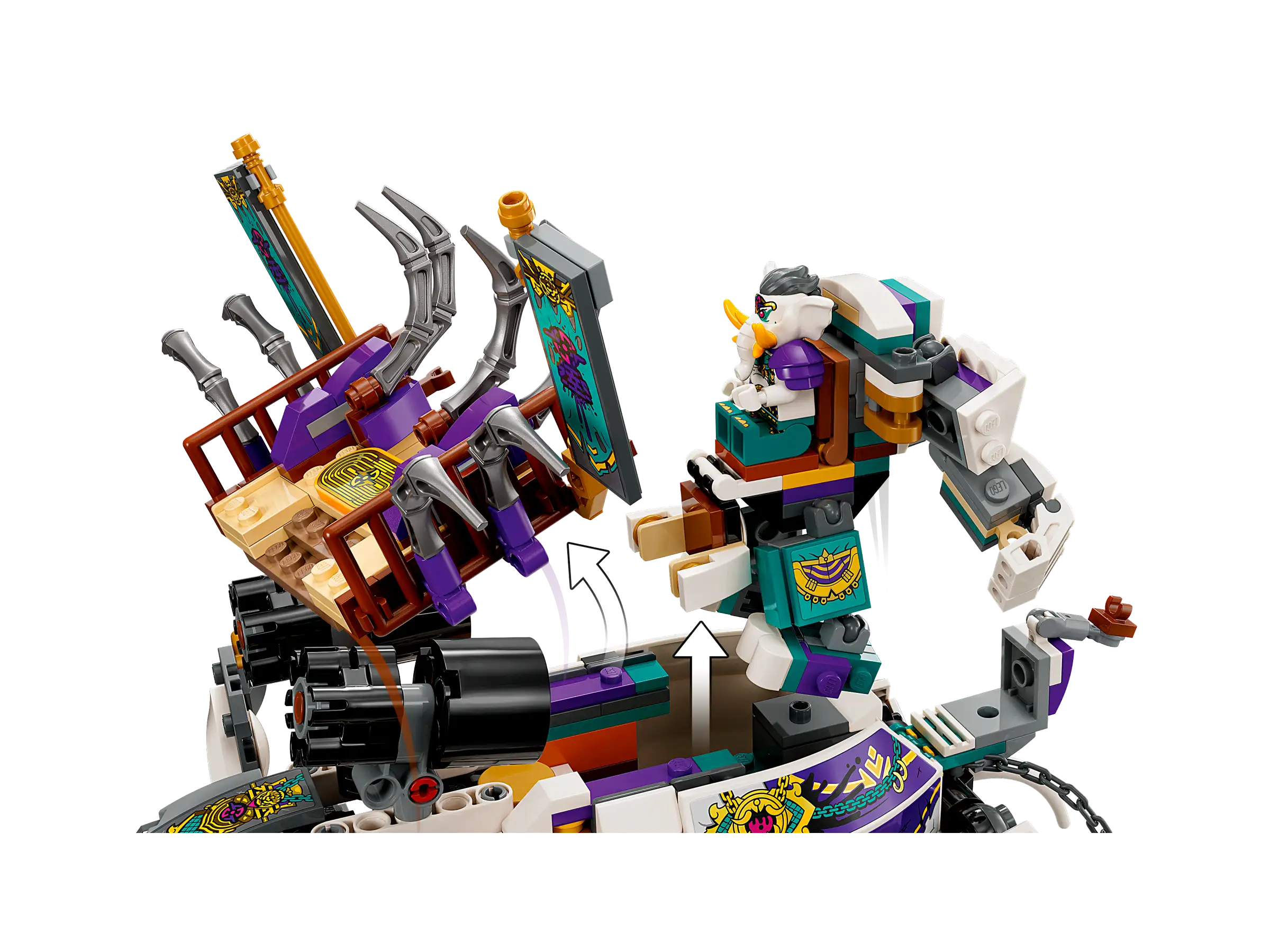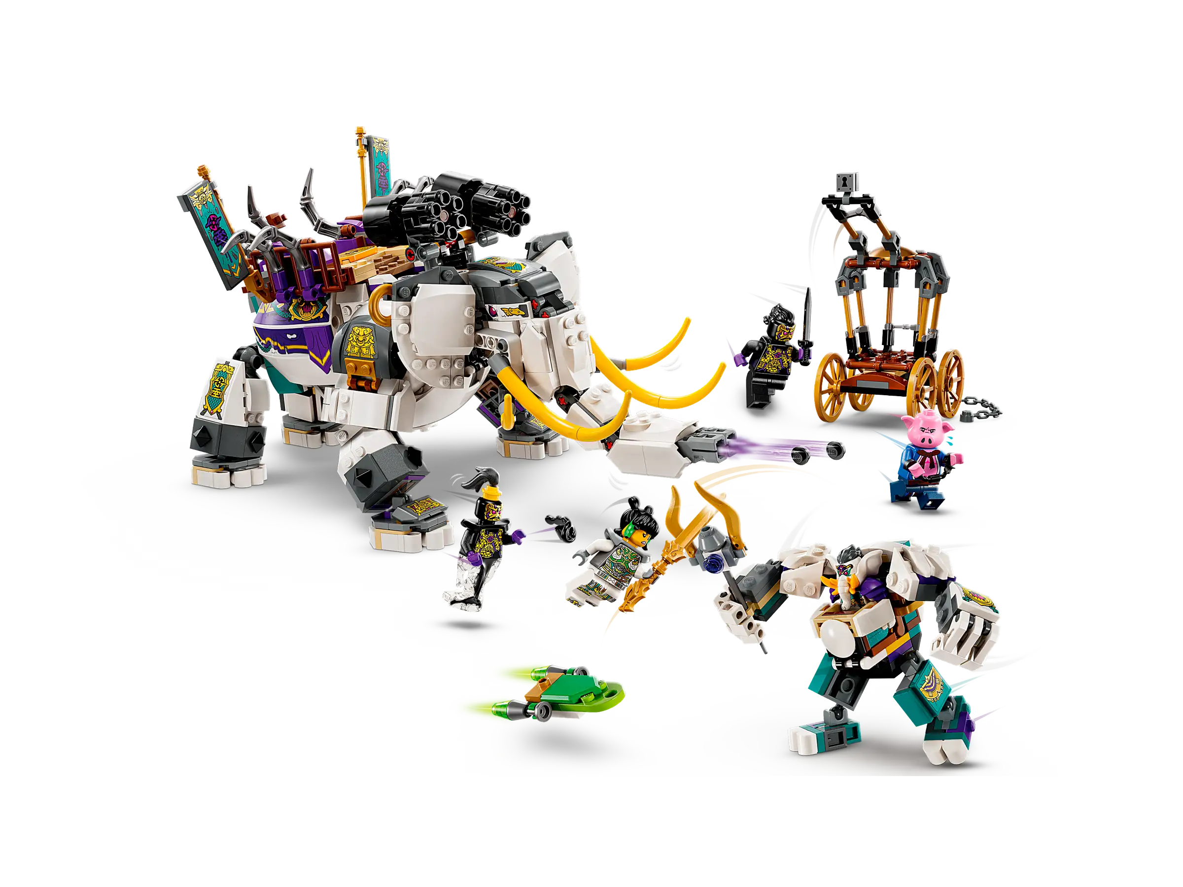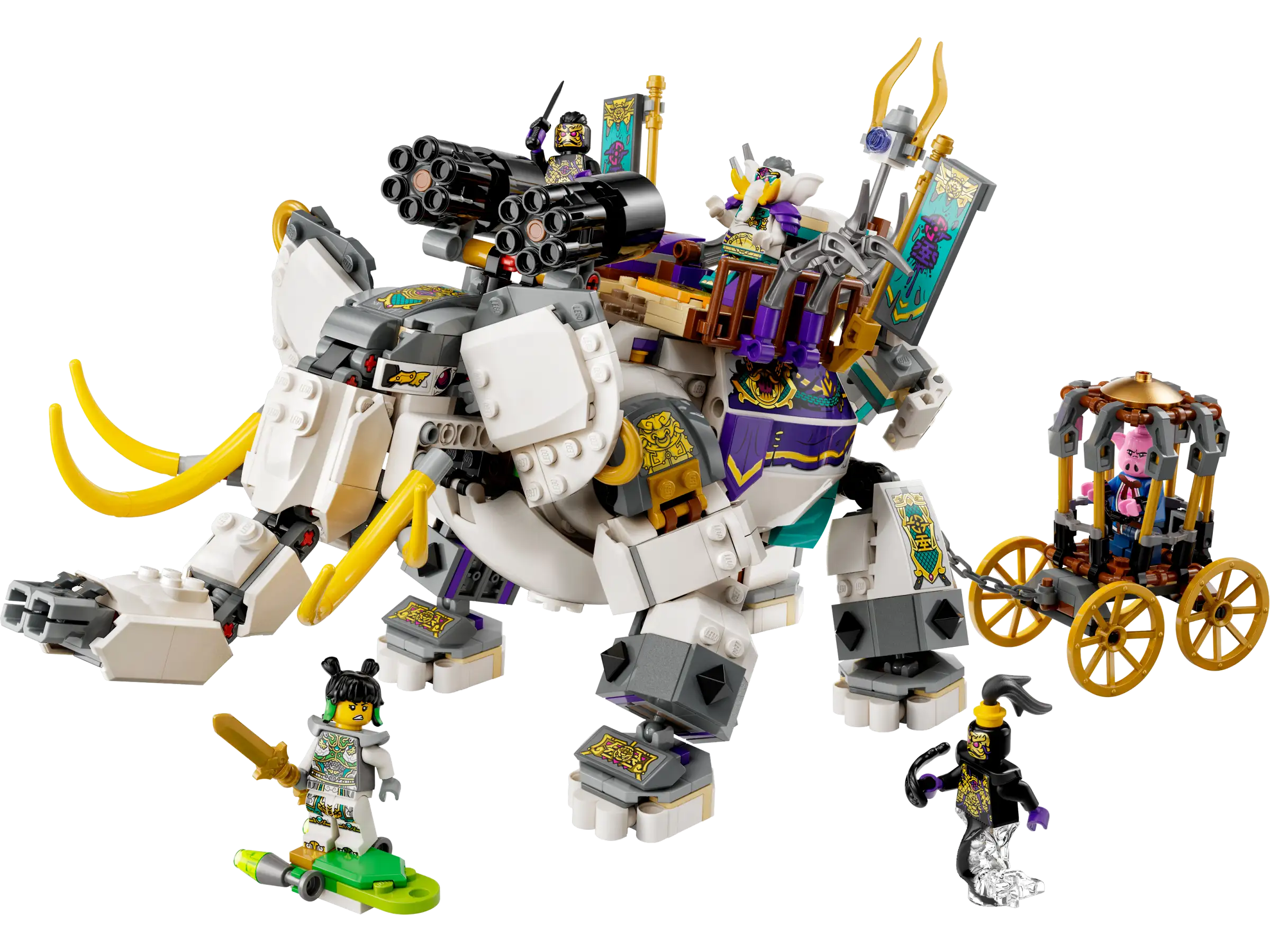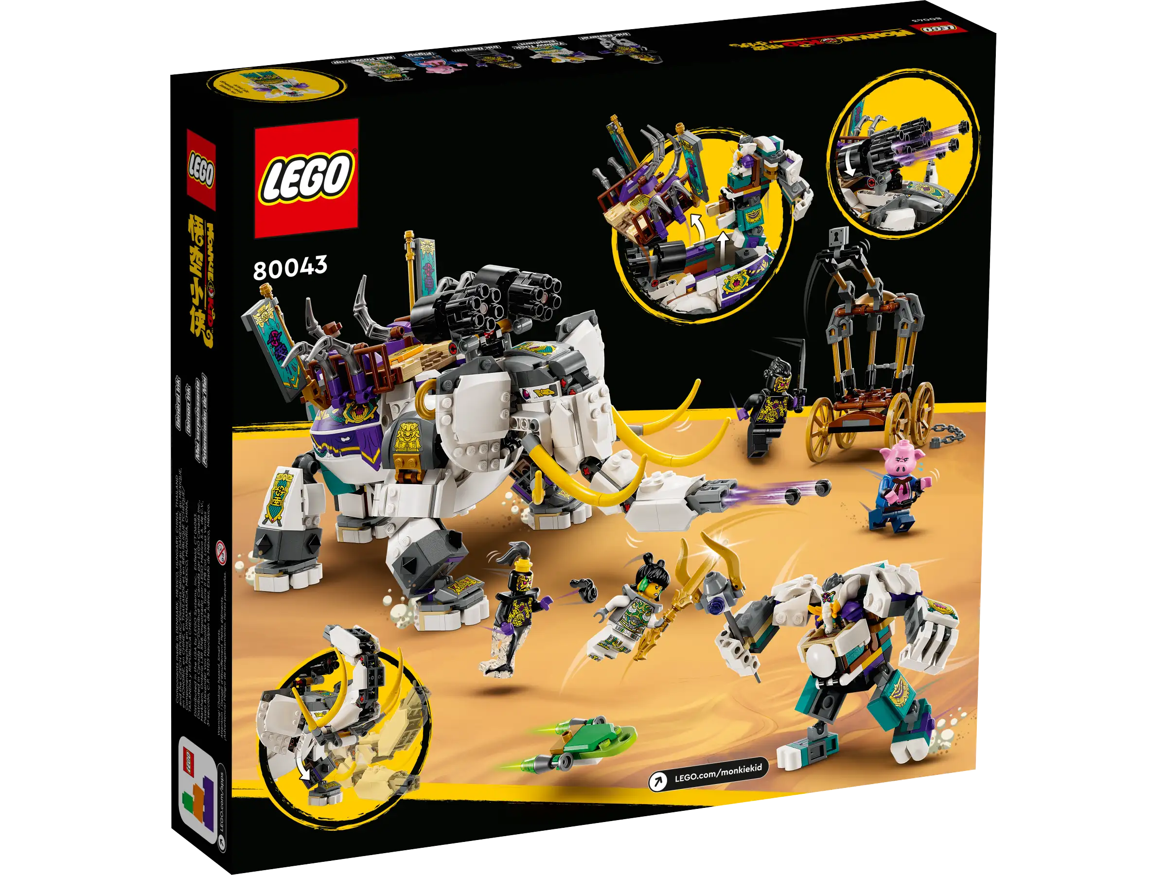 Порадуйте детей от 8 лет и старше классической китайской легендой в этой реконструкции LEGO Monkie Kid Слона с желтым бивнем (80043). В этот набор входит Слон с желтым бивнем из 4-го сезона телешоу LEGO Monkie Kid, а также минифигурки Мэй Пауэр-ап, Пигси, Слона с желтым бивнем, Чернильного демона и Чернильного генерала, подвижное существо-слон с троном, подвижным хоботом, функцией многократной стрельбы и секцией трансформирующегося меха, а также повозка с клеткой.