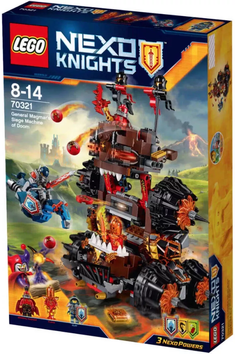LEGO Nexo Knights 70321 Осадная машина генерала Магмара – это впечатляющий набор, который перенесет вас в мир захватывающих битв и волшебных приключений. Создайте мощную осадную машину и помогите генералу Магмару и его армии завоевать королевство.