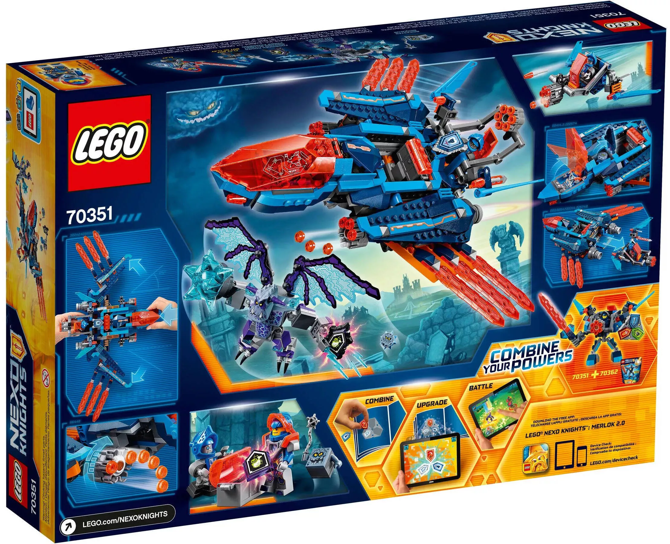 Конструктор LEGO Nexo Knights 70351 Истребитель Сокол Клэя переносит вас в мир высокотехнологичных рыцарских приключений, предоставляя возможность построить мощный боевой истребитель. Этот набор идеален для поклонников серии Nexo Knights и любителей динамичных воздушных сражений.