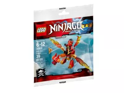 Reite auf Kais Minidrachen. Das Modell verfügt über bewegliche Flügel, Beine mit Kugelgelenk und durchsichtige Feuerelemente. Enthält Airjitzu Kai als Minifigur.