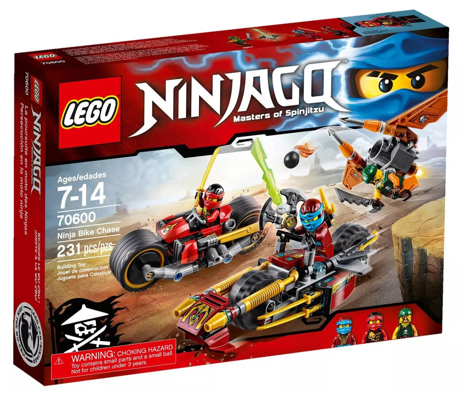 Набор LEGO Ninjago 70600 Погоня на мотоциклах включает в себя 231 деталь и предлагает сборку двух мощных мотоциклов и множество аксессуаров для минифигурок. Этот набор станет отличным дополнением к вашей коллекции LEGO Ninjago, позволяя воссоздавать захватывающие приключения ниндзя.