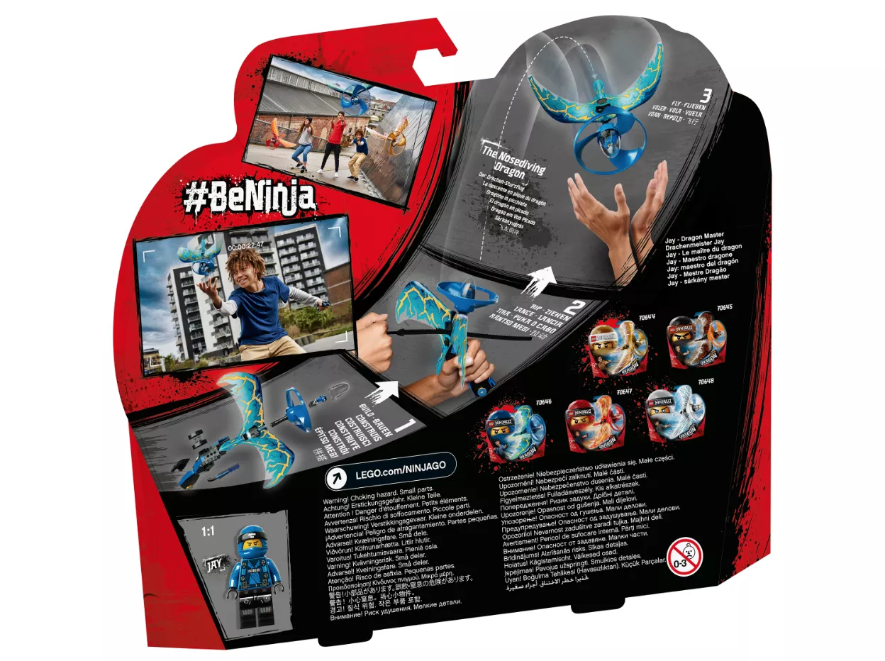 Ваш ребенок готов к ярким впечатлениям? Тогда вперед - пусть обретает новые знания и умения ниндзя с флайером «Джей - Мастер дракона» LEGO NINJAGO. Чтобы выполнить неповторимые трюки, нужно сложить из кубиков рукоять и посадить Джея в капсулу. Осталось лишь прицепить крылья дракона, зафиксировать клинок - и можно смело запускатьфлайер.Пускай устраивает захватывающие дух соревнования - Полет дракона - и поразит друзей своим умением исполнять улетные маневры.