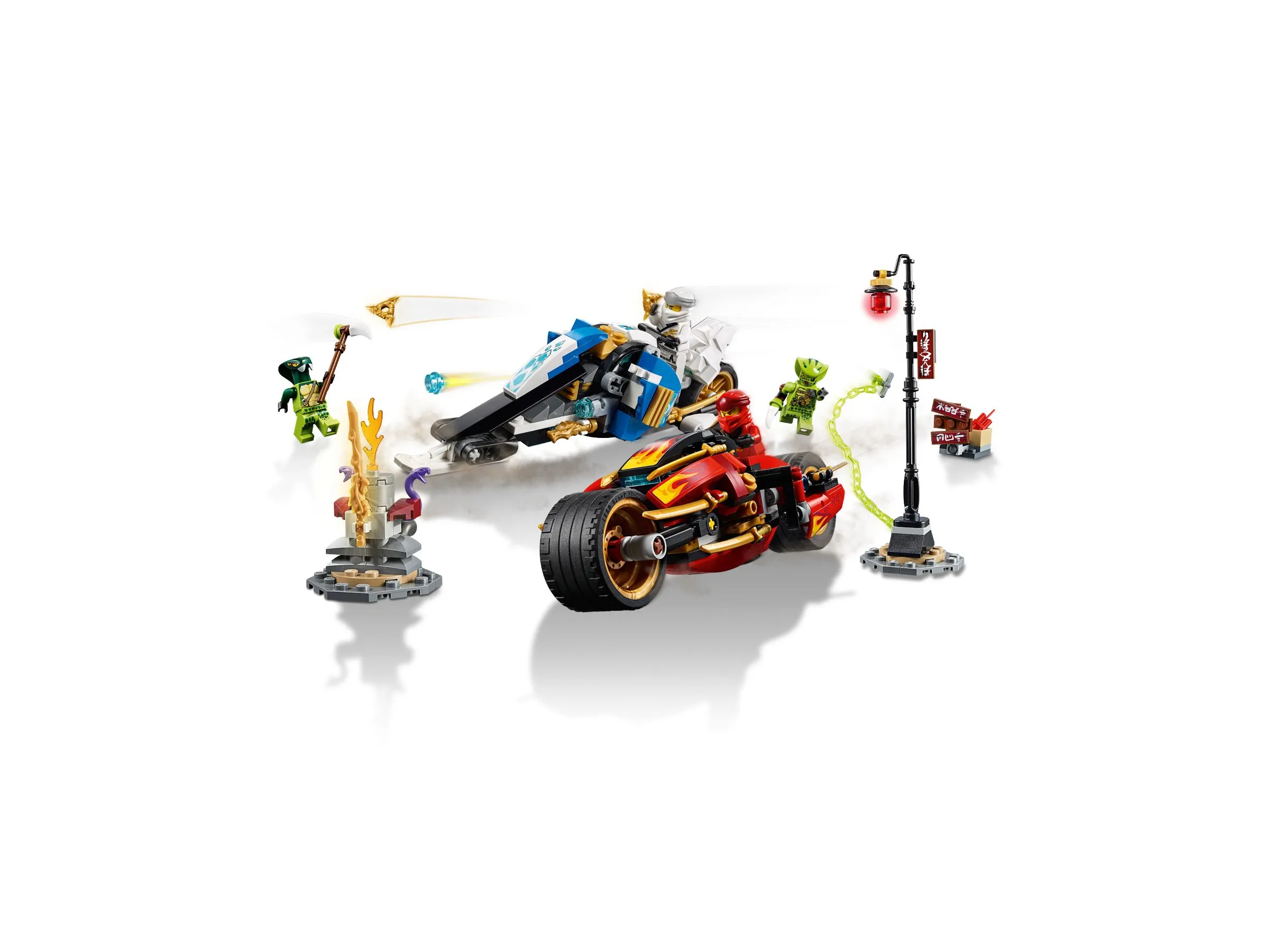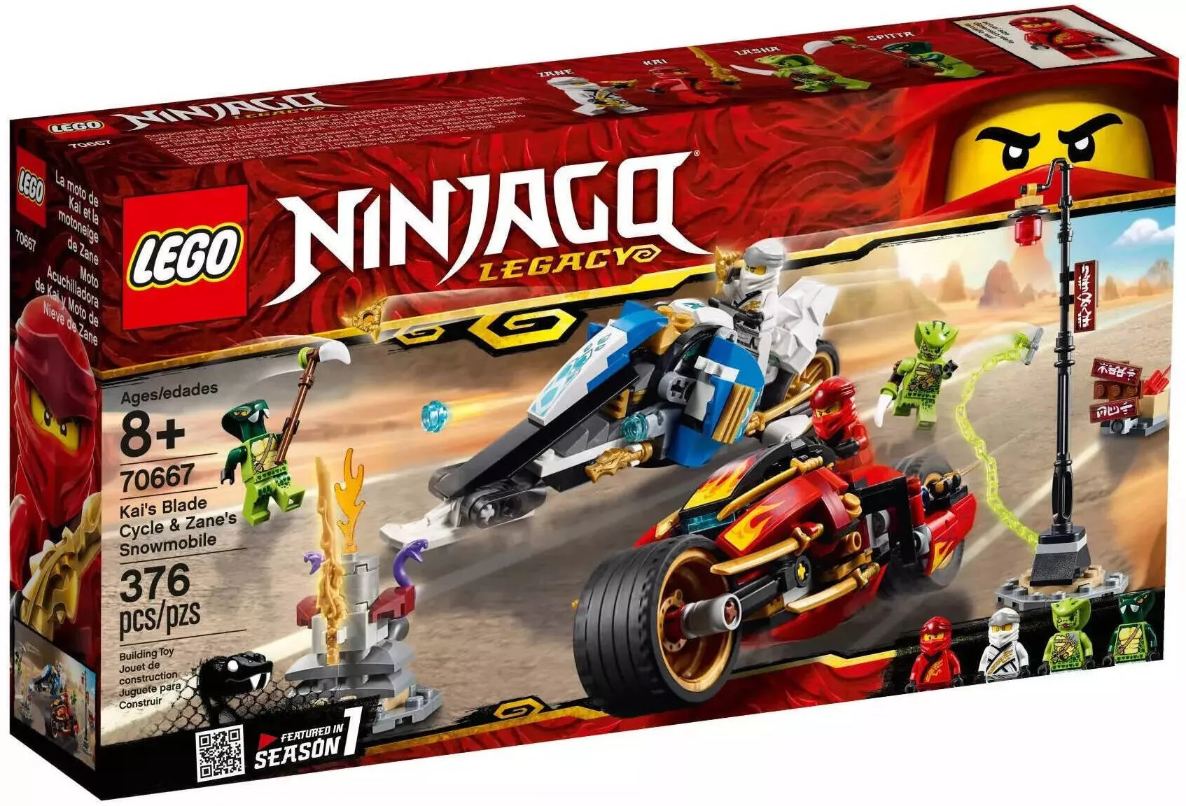 Конструктор LEGO Ninjago 70667 Мотоцикл-клинок Кая и снегоход Зейна – это захватывающий набор, который переносит вас в мир ниндзя и эпических сражений. Набор включает в себя две впечатляющие транспортные модели, которые помогут вам воссоздать динамичные сцены из вселенной Ninjago.