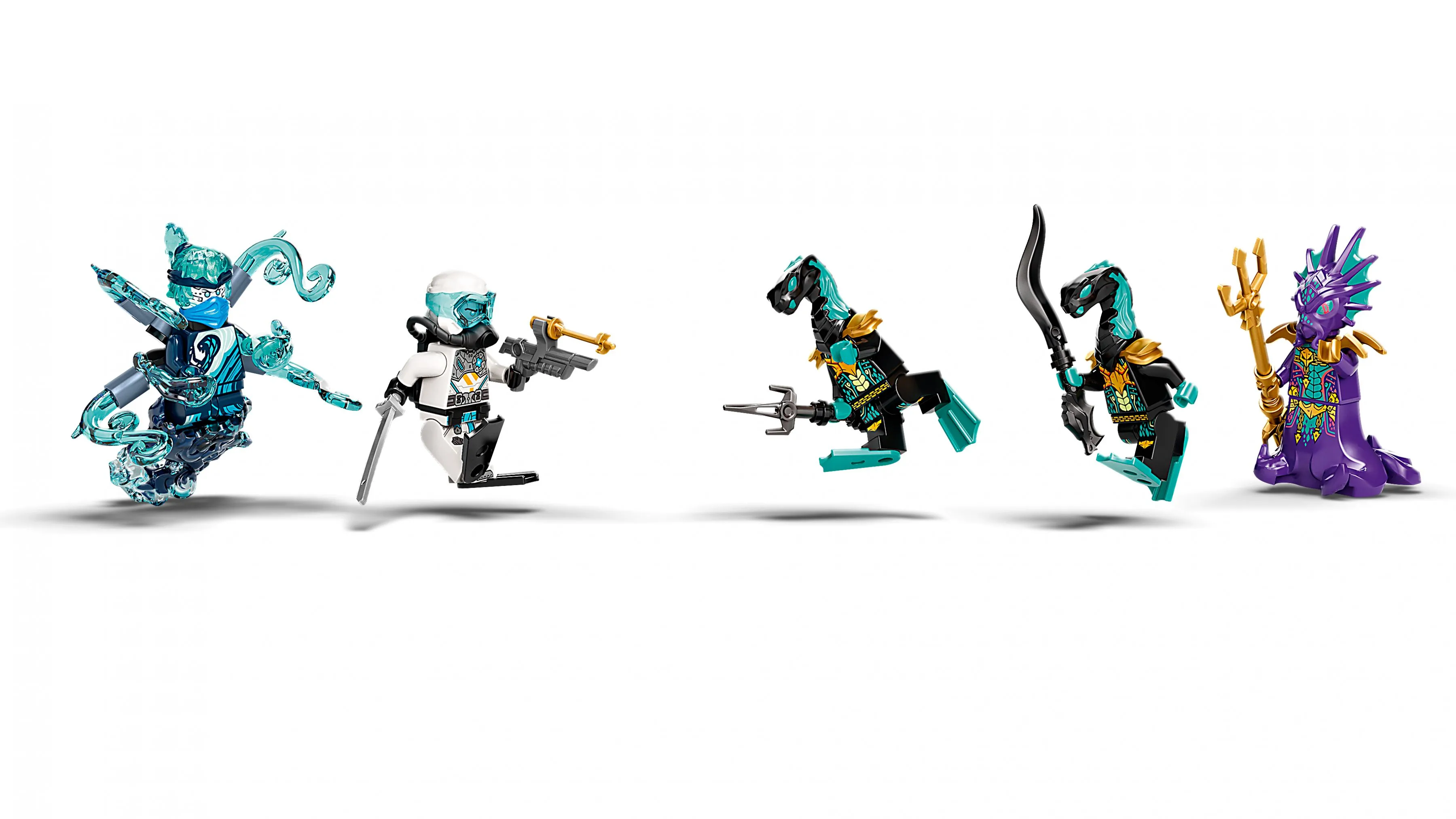 • Минифигурки персонажей – в комплект входят пять минифигурок: Ния, принц Калмар, водный страж, водный змеевич и водный драконий страж, каждая из которых вооружена и готова к бою.