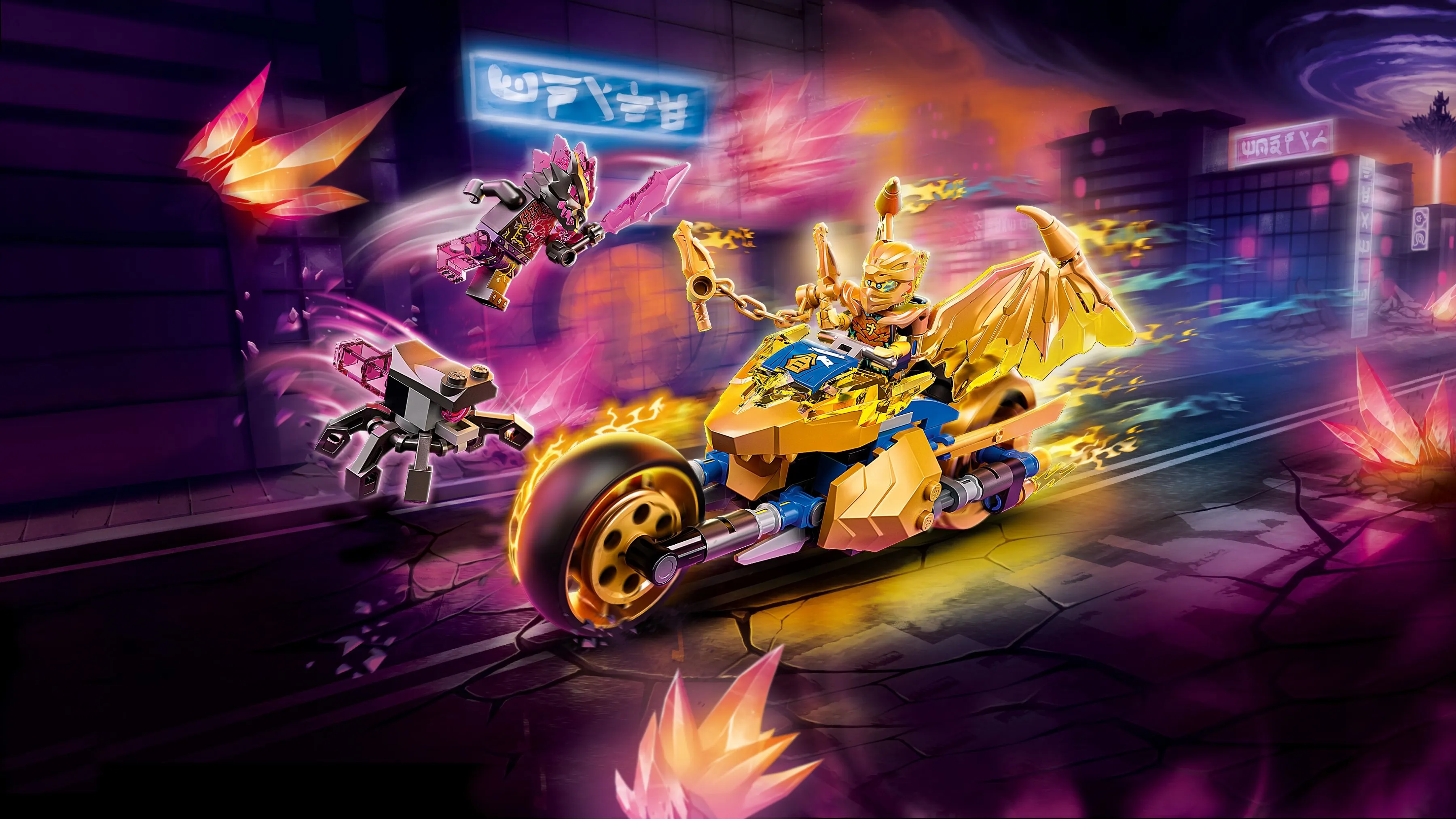 Набор Мотоцикл Джея Золотой дракон позволяет не только собрать эффектный транспорт для героя, но и участвовать в эпических сражениях с минифигурками злодеев. Этот комплект идеально подходит для юных поклонников мира Ninjago, которые любят скорость, приключения и боевые сцены.