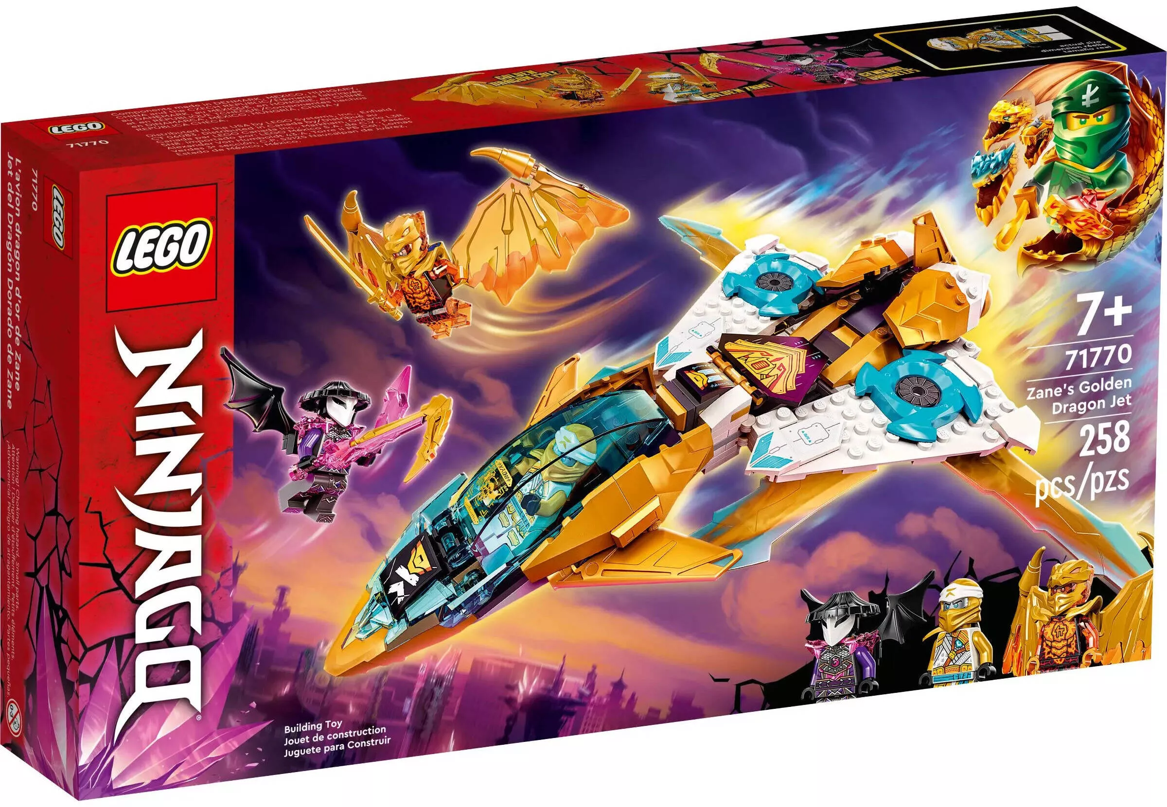 Набор LEGO 71770 предлагает собрать мощный самолёт Зейна, созданный для эпических воздушных битв. Этот набор является частью серии "Кристальный Король", в которой ниндзя сталкиваются с новыми могущественными противниками.