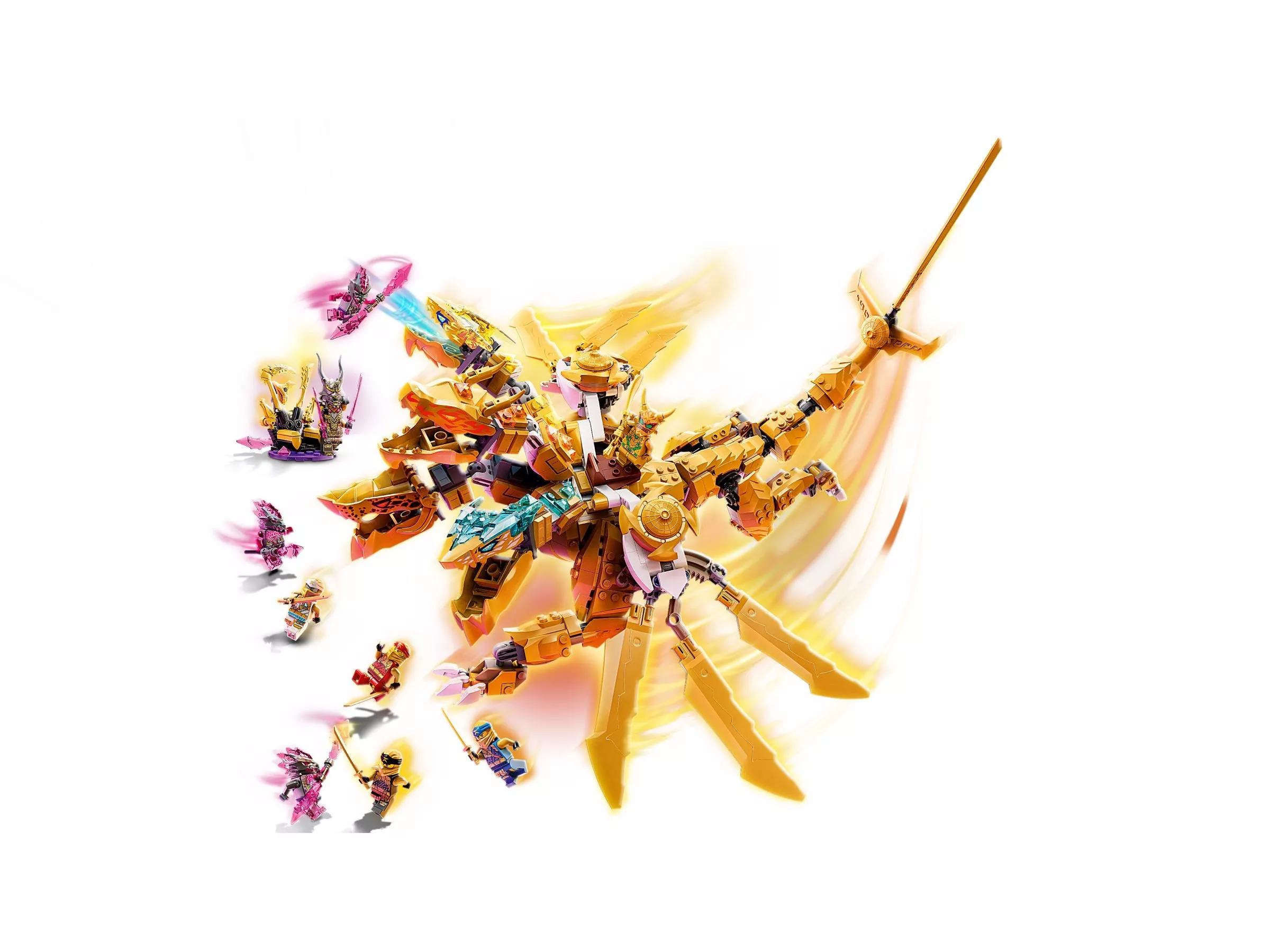 LEGO Ninjago 71774 Золотой ультрадракон Ллойда – это потрясающий набор, который позволяет собрать мощного и величественного дракона, управляемого Ллойдом, одним из главных героев Ninjago. Этот дракон является одним из самых крупных и впечатляющих в серии, и он играет ключевую роль в сражениях против злодеев из Кристальной армии. Набор идеально подходит для поклонников Ninjago, которые хотят погрузиться в эпические битвы с участием героев и их могущественных союзников.