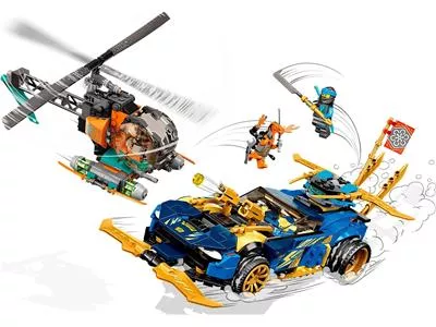 Schick Jay und Nya in ihrem unglaublichen Rennauto in ein spannendes Duell mit den bösen Schlangen. Vorsicht – sieh nach oben! Boa-Jäger fliegt in einem gepanzerten Hubschrauber und Kobra-Mech möchte herunterspringen. Löse den Flieger vom Auto und lass Nya losfliegen, während Jay die Shooter des Rennwagens abfeuert. Wenn du deine Mission erfüllst, erhältst du zur Belohnung ein Teamwork-Banner zum Sammeln.