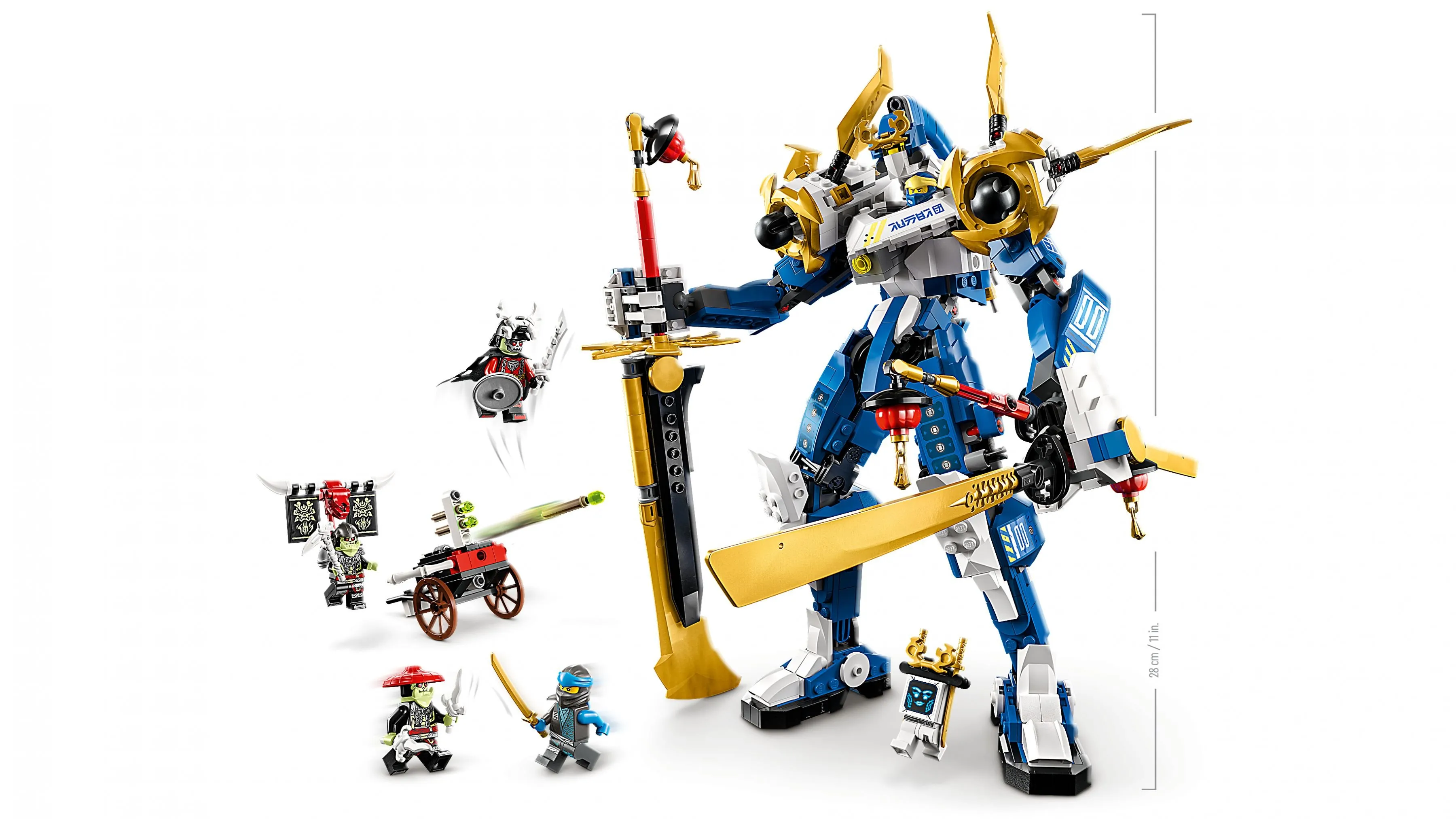 В комплект также входят минифигурки Джея и его союзников, а также несколько вражеских персонажей, с которыми Джей может сразиться, управляя своим роботом-титаном. Кабина робота открывается, и туда можно поместить минифигурку Джея, чтобы он мог управлять своим могучим механизмом и защищать мир Ninjago от зла.
