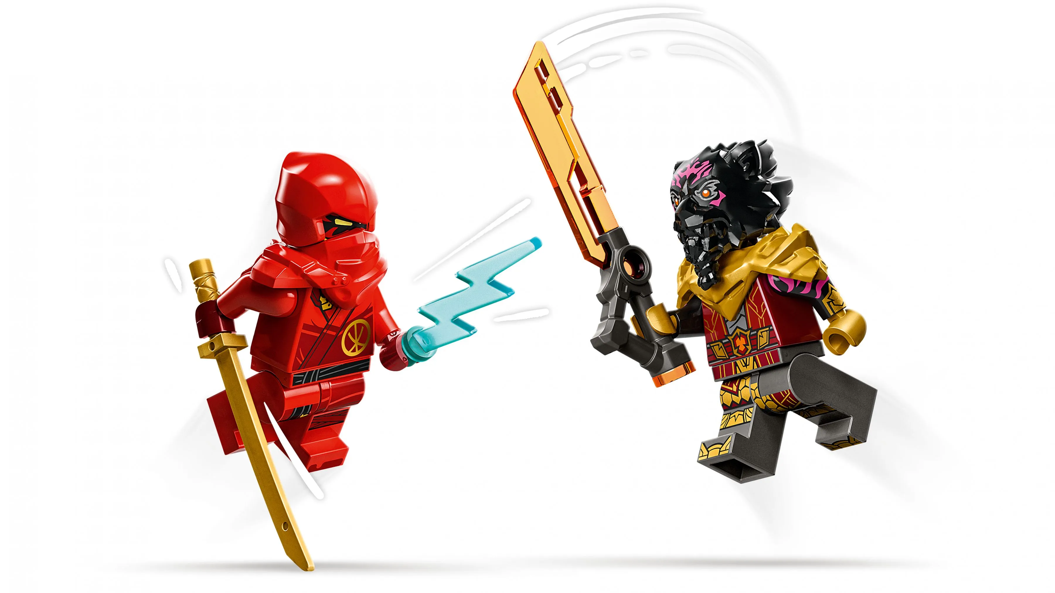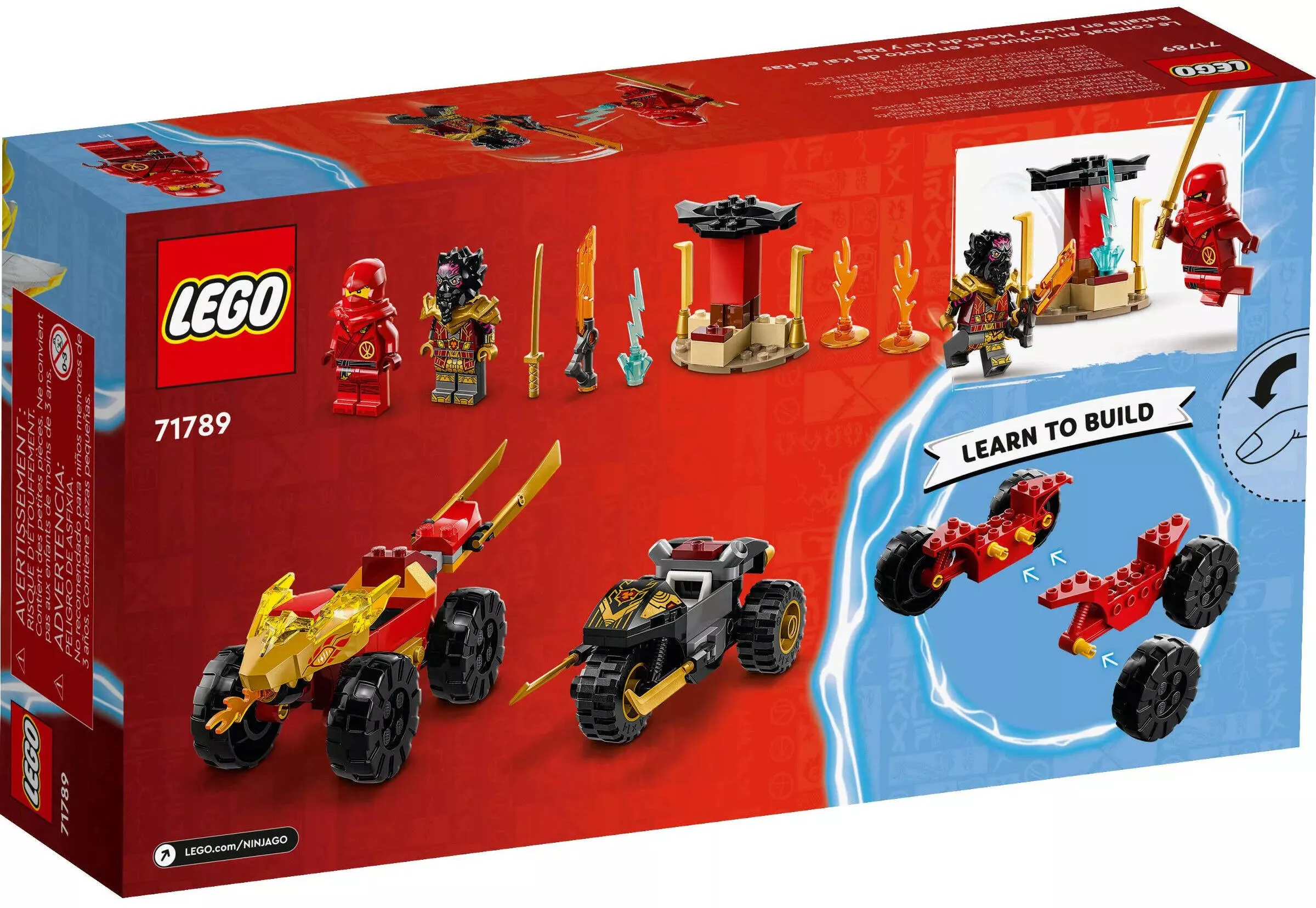 LEGO Ninjago 71789 Битва автомобилей и мотоциклов Кая и Раса – это увлекательный набор, который позволяет поклонникам Ninjago воссоздать захватывающие скоростные сражения между Каем, мастером огня, и его врагом Расом. В центре внимания – мощный огненный автомобиль Кая и быстрый мотоцикл Раса, которые идеально подходят для динамичных гонок и сражений на высоких скоростях. Набор сочетает в себе захватывающий игровой процесс, высокую детализацию и возможность придумывать множество сценариев для боёв.