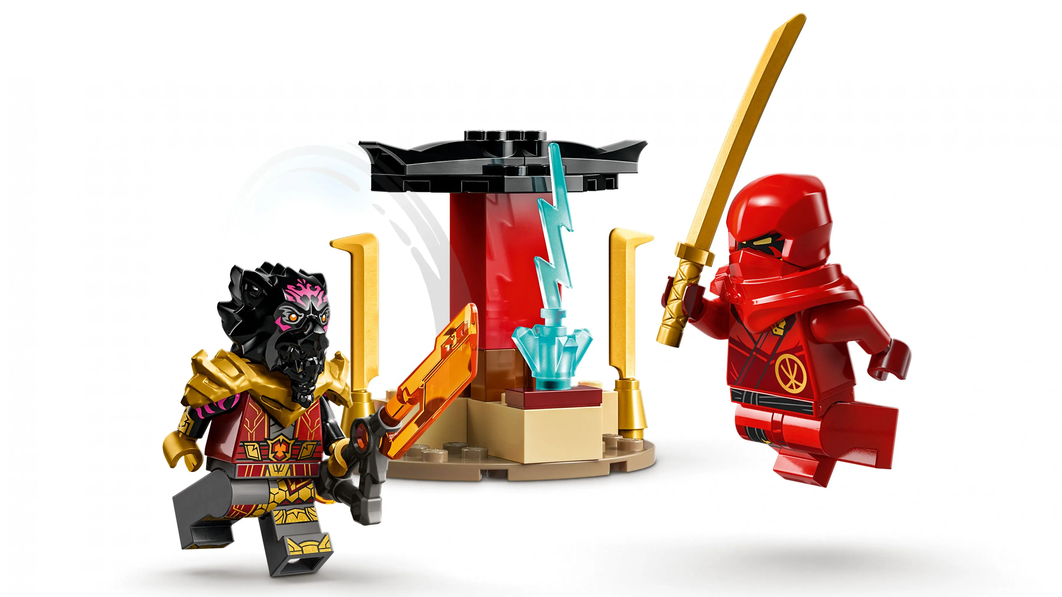 Главными элементами набора являются огненный автомобиль Кая и зловещий мотоцикл Раса. Каждый из них выполнен с уникальными характеристиками и боевыми функциями, что позволяет организовывать динамичные сражения и погоню. В наборе также представлены минифигурки героев и злодеев, что добавляет разнообразия в игру и даёт возможность разыгрывать эпические сцены прямо в мире Ninjago.