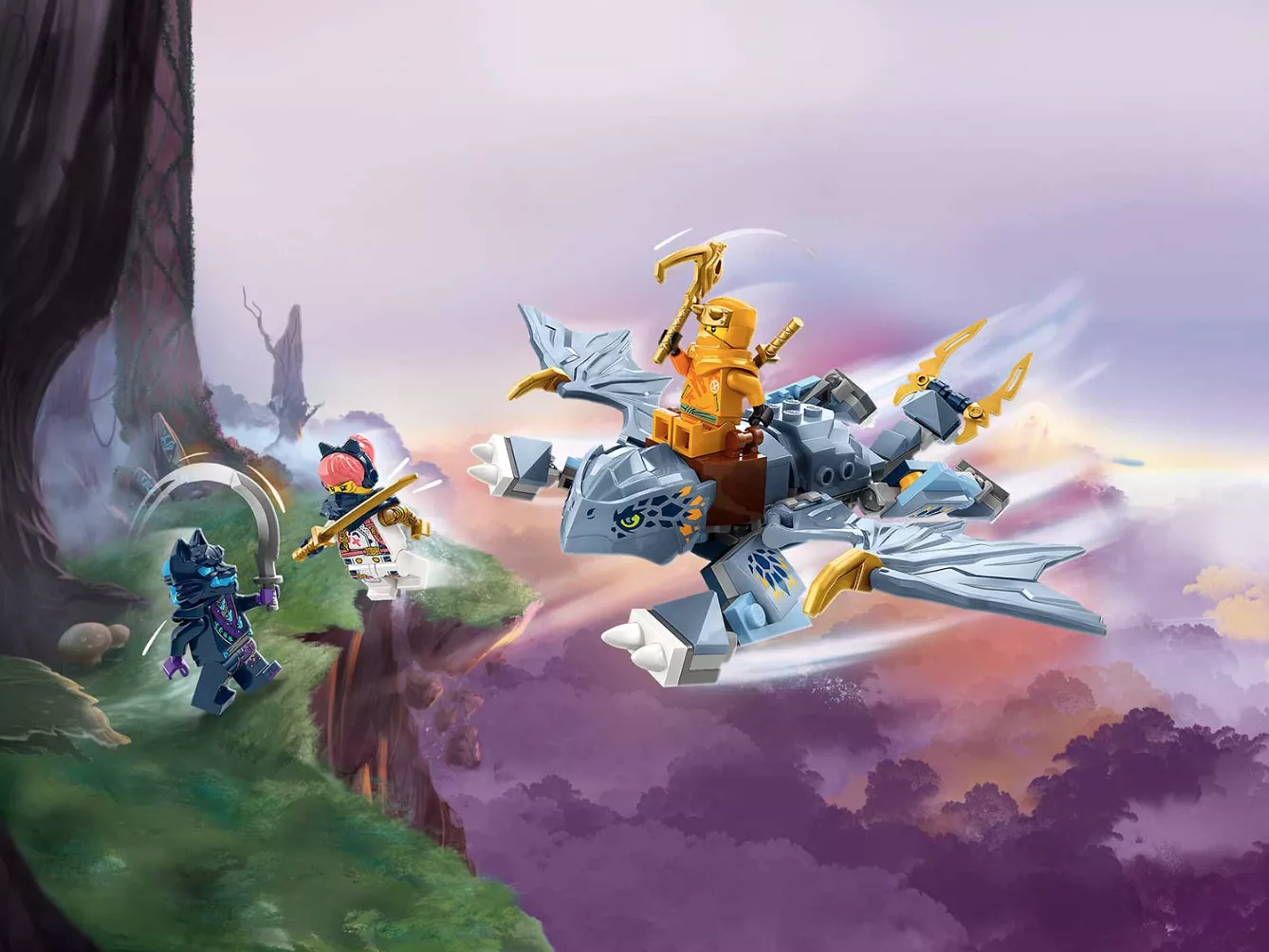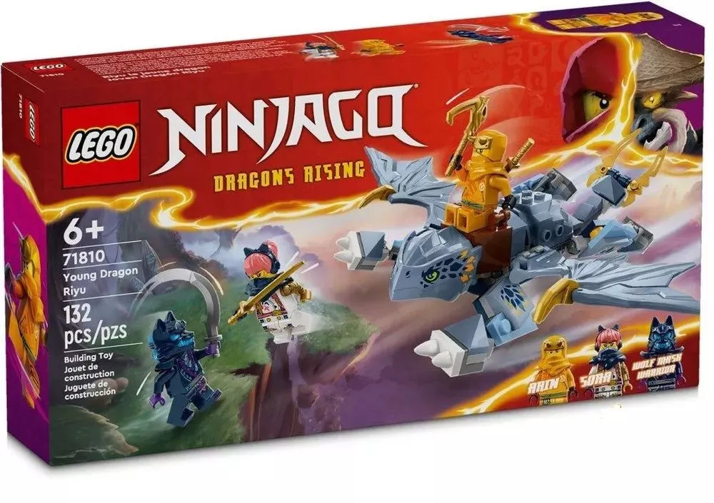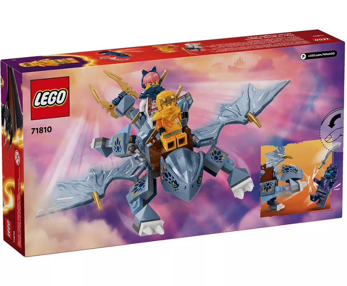 Мальчики и девочки в возрасте от 6 лет и старше смогут воссоздать воздушные приключения из второго сезона мультсериала NINJAGO Dragons Rising с помощью этого игрового набора «Молодой дракон Райю» (71810). Эта детская игрушка представляет модель юного дракона Райю с подвижными крыльями, ногами, хвостом и седлом, позволяющим минифигуркам кататься на его спине.