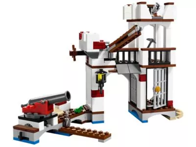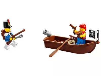 Krawumm! Ein listiger Pirat hat einen tollkühnen Überfall auf die Soldatenfestung verübt und dabei nicht nur seinen lästigen Kumpan aus dem Gefängnis befreit, sondern auch den Schatz geraubt. Doch ein Blaurock-Soldat bemannt nun die Kanone und der Blaurock-Gouverneur und seine Tochter setzen sich heftig zur Wehr. Hilf dabei, die Flucht der Piraten zu vereiteln, zieh die Beute mit der Seilwinde aus deren Ruderboot hinauf und eröffne das Feuer. Nachdem du das Ruderboot versenkt hast, nimmst du diedurchnässten Piraten gefangen und steckst sie wieder in der Kerker, in den sie auch gehören! Kombinierbar mit dem Set 70410 "Wachposten der Soldaten" Enthält 5 Minifiguren mit Ausrüstung und Zubehör: Blaurock-Gouverneur, die Tochter des Gouverneurs, ein Blaurock-Soldat und 2 Piraten.