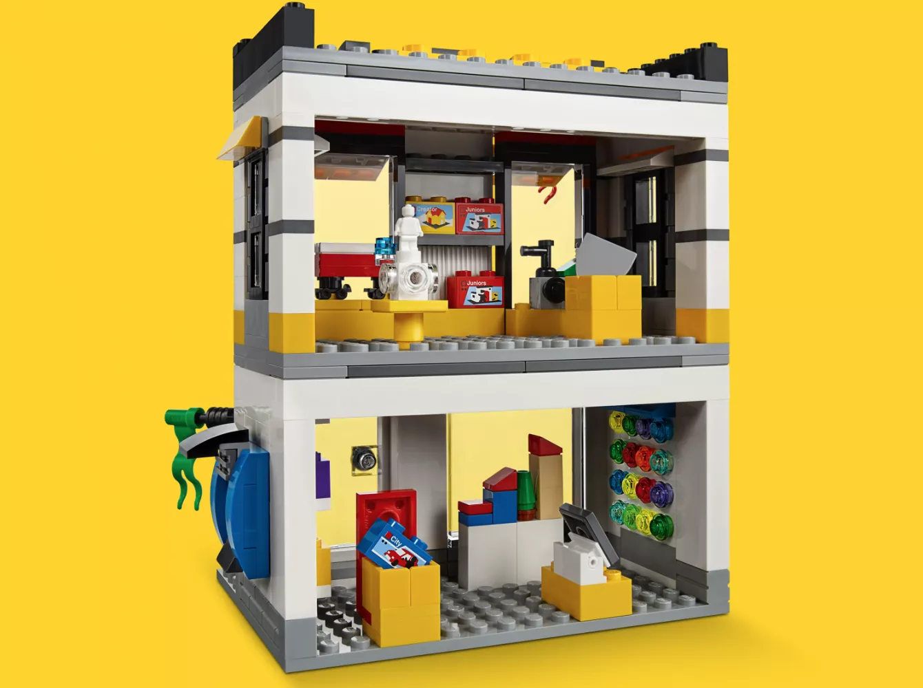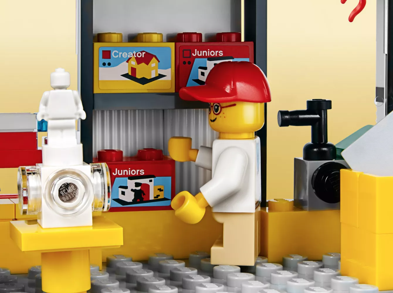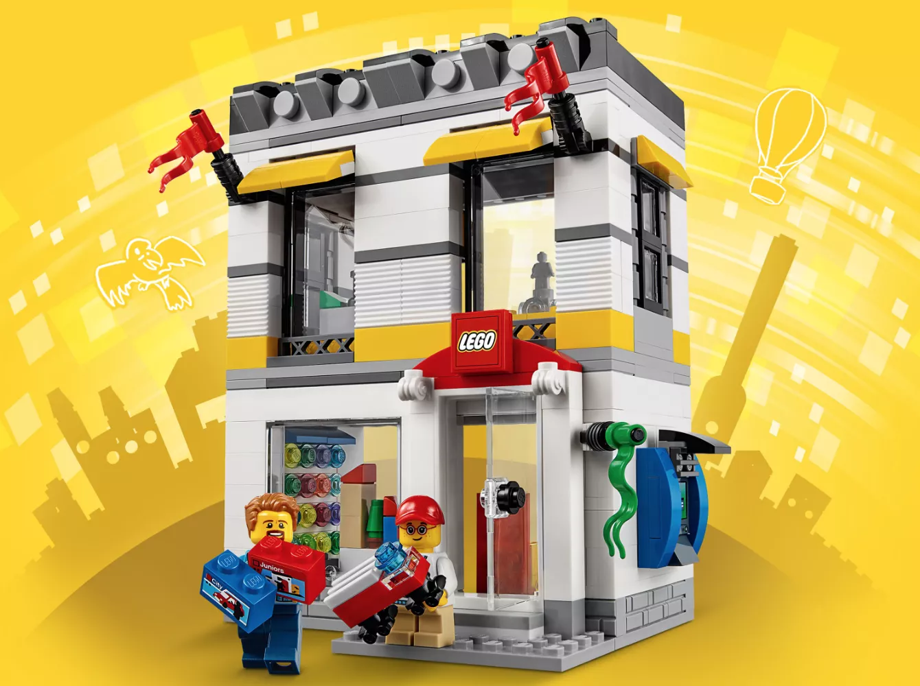 Куда ходят супергерои за покупками? Конечно, в мини-модель магазина LEGO! Соберите из 362 деталей двухэтажное здание с крыльцом и вывеской, внутри которого расположены полки с игрушками, кассовый аппарат и все-все-все, как в настоящем центре продаж ЛЕГО. Есть даже продавец и покупатель в комплекте.