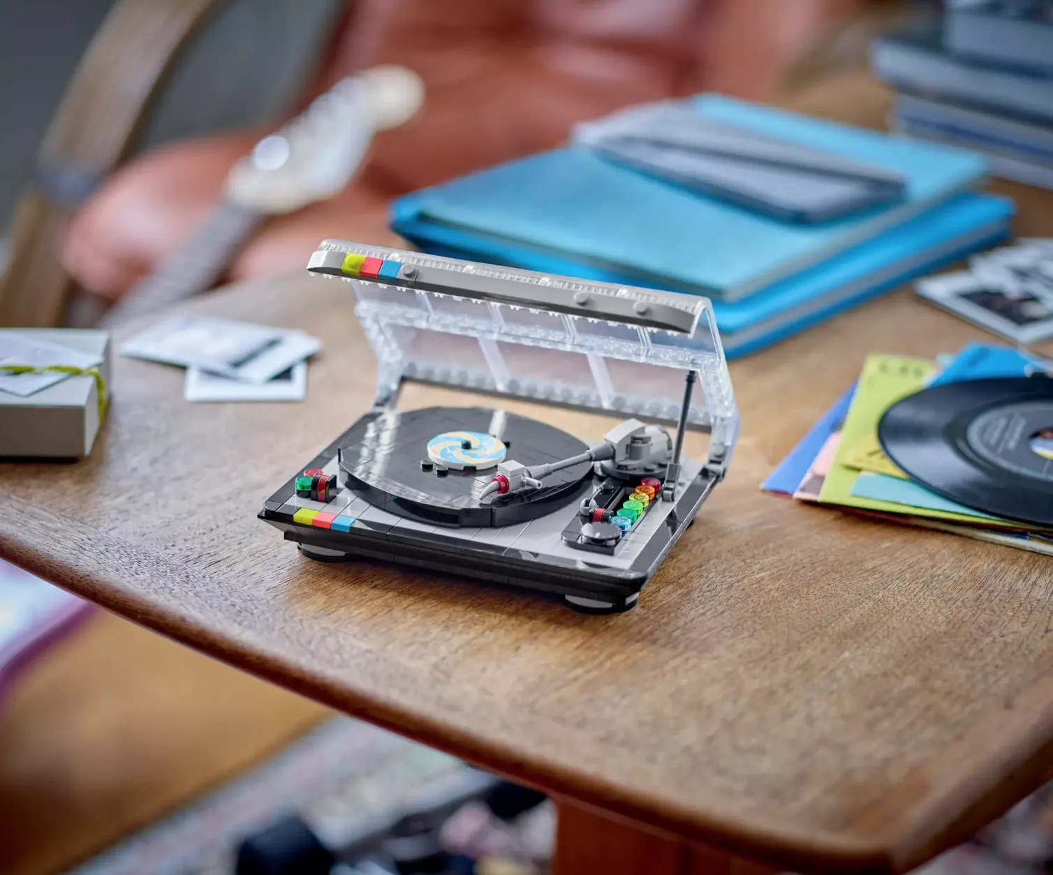 • Декор LEGO – После сборки проигрыватель превращается в ретро-украшение интерьера, которое можно с гордостью разместить в спальне или музыкальной комнате.