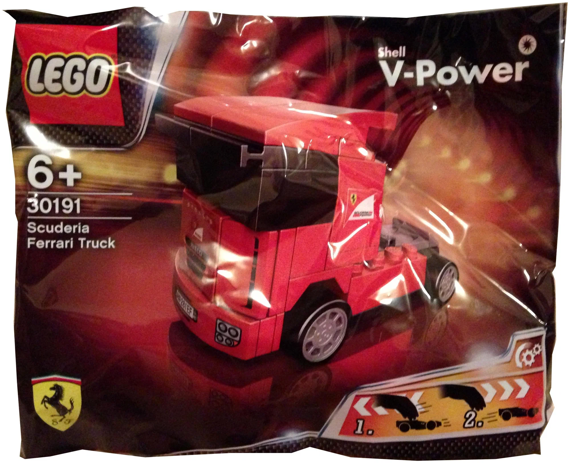 Соберите свой тягач, подготовьтесь к гонке и отправляйтесь на трек с набором LEGO Racers 30191 Тягач Феррари Скудерия!