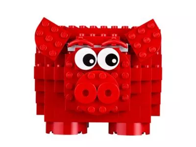 Baue das Modell LEGO Kultiges Sparschwein, um darin dein Kleingeld zu sparen. Lass deine Geldstücke durch den Schlitz hineinfallen und verdrehe die Augen und die beweglichen Ohren des roten Schweinchens, um dem Sparschwein immer wieder einen anderen süßen Gesichtsausdruck zu verleihen.