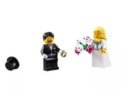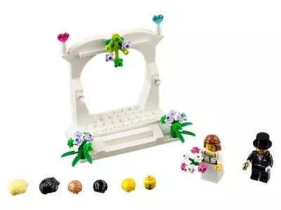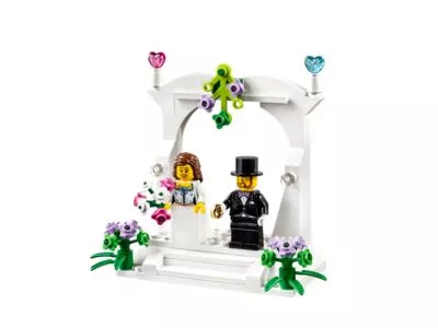 Mit diesem Minifiguren-Hochzeits-Set verleihst du deinen Hochzeitsfeierlichkeiten einen Hauch von LEGO Magie. Das charmante Set zum Zusammenbauen enthält Braut und Bräutigam als Minifiguren, einen Blumenstrauß und einen goldenen Ring sowie einen Hochzeitsbogen mit Blumen und Herzen. Bedanke dich bei deinen Gästen mit dieser entzückenden Hochzeitsschleife, die sie für immer in Ehren halten können.