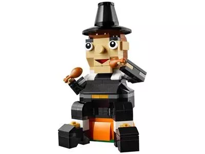 Das saisonale Set mit einem hungrigen Pilgervater in traditioneller Bekleidung mit Pilgerhut und Schuhen bietet viel Spaß. Setze ihn auf einen großen Kürbis, wo er genüsslich seine beiden leckeren Truthahnkeulen verspeisen kann. Das perfekte Thanksgiving-Geschenk für jeden Fan der LEGO Bausets.