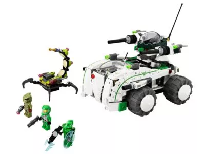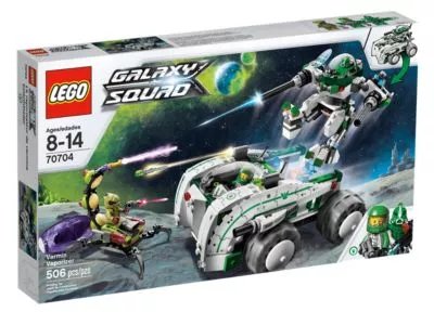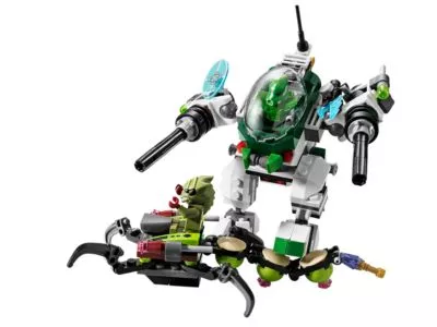 Der Weltraum-Skorpion hastetmit seinem Kokon dem grünen Helden der Galaxy Squad hinterher! Hilf dem Anführer des grünen Teams, Chuck Stonebreaker und seinem grünen Roboter dabei, das Kriechtier mit dem ScRobo-Speziallabor außer Gefecht zu setzen! Bringe den Alien-Eindringling in Bedrängnis, indem du das Robo-Speziallabor in einen mächtigen Roboter und ein gepanzertes Labor aufteilst! Setze Chuck Stonebreaker in das Cockpit des Roboters und feuere schlagkräftige Geschosse und Doppel-Raketen auf dn Alien ab! Im Speziallabor kannst du dann den Insekten-Alien untersuchen. Enthält 3 Minifiguren: Chuck Stonebreaker, grüner Roboter und Insekten-Alien – alle mit passenden Waffen.