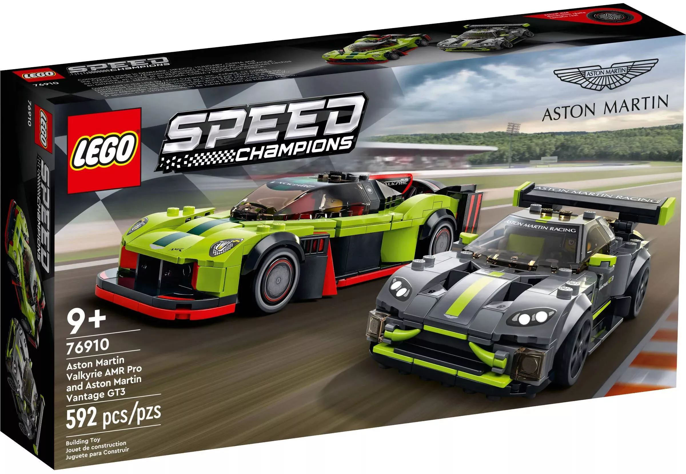 Набор LEGO Speed Champions 76910 Aston Martin Valkyrie AMR Pro и Aston Martin Vantage GT3 включает в себя 592 детали и предлагает сборку двух великолепных автомобилей, известных своей мощностью и элегантностью. Этот набор станет отличным дополнением к вашей коллекции LEGO Speed Champions, позволяя воссоздавать захватывающие гоночные сцены и выставочные экспозиции.