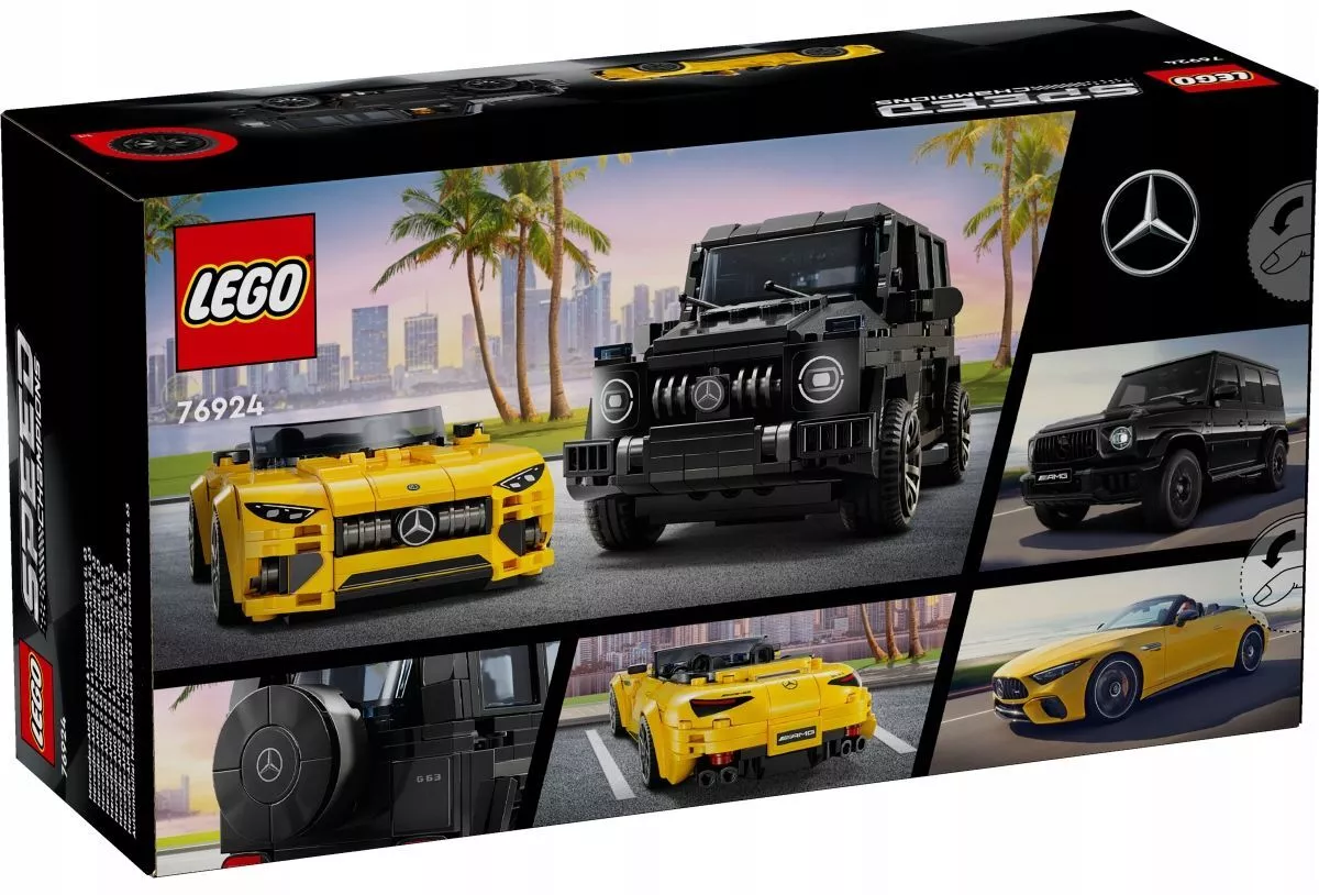 Конструктор LEGO Speed Champions 76924 Mercedes-AMG G 63 и Mercedes-AMG SL 63 предлагает увлекательное погружение в мир роскошных и мощных автомобилей.