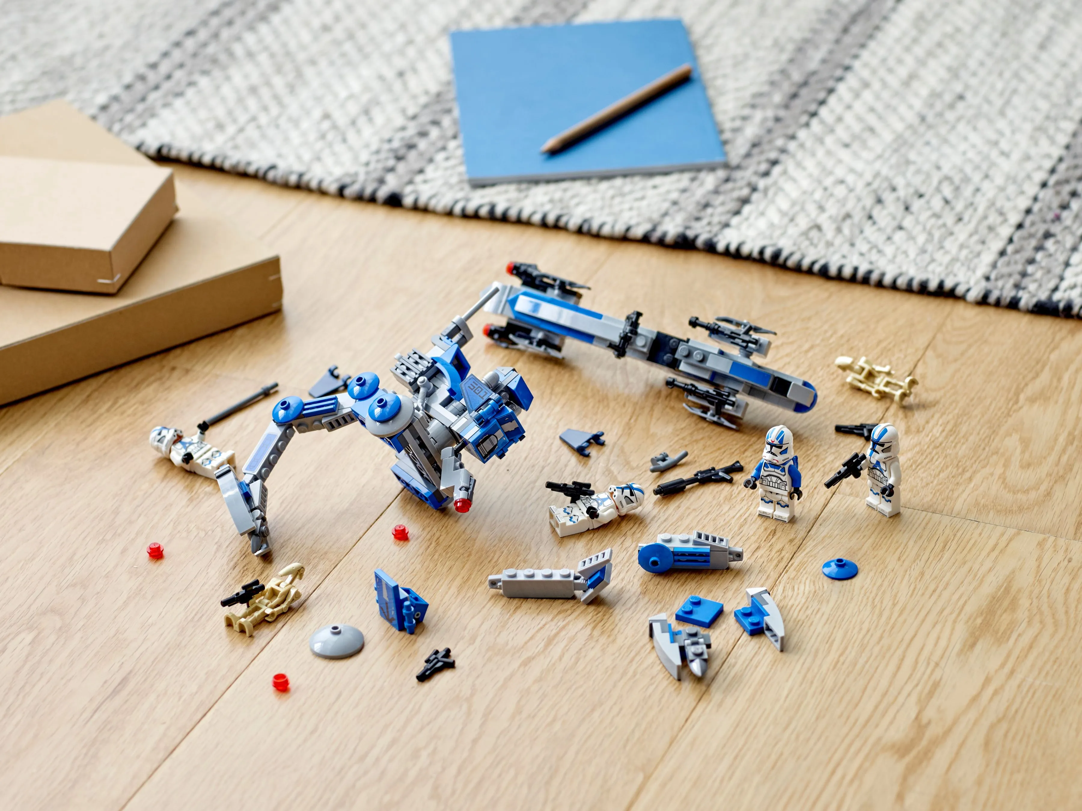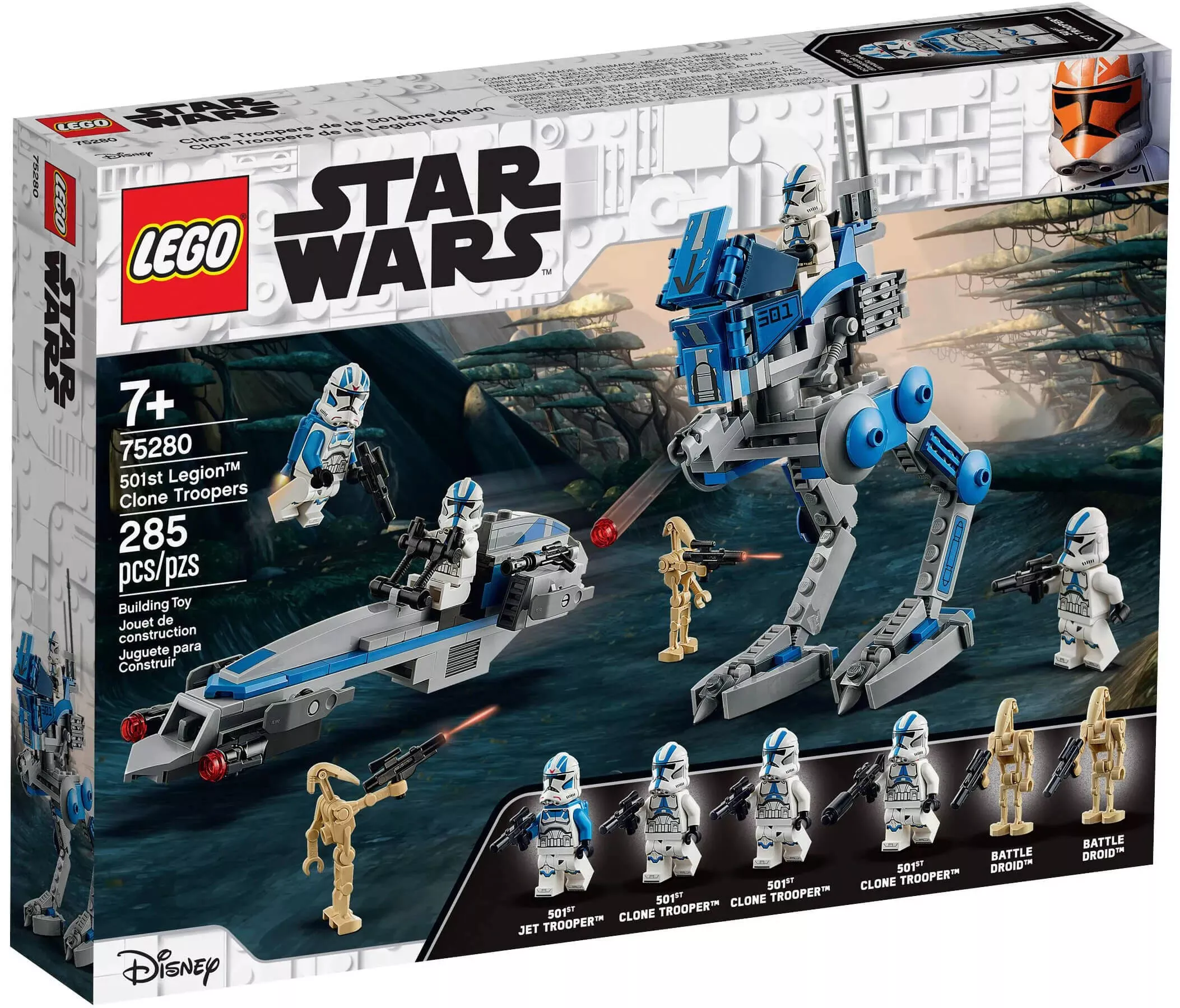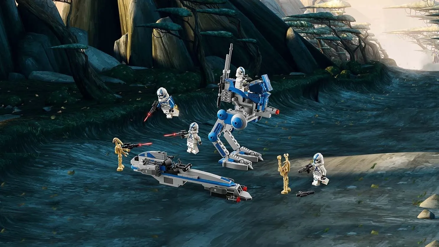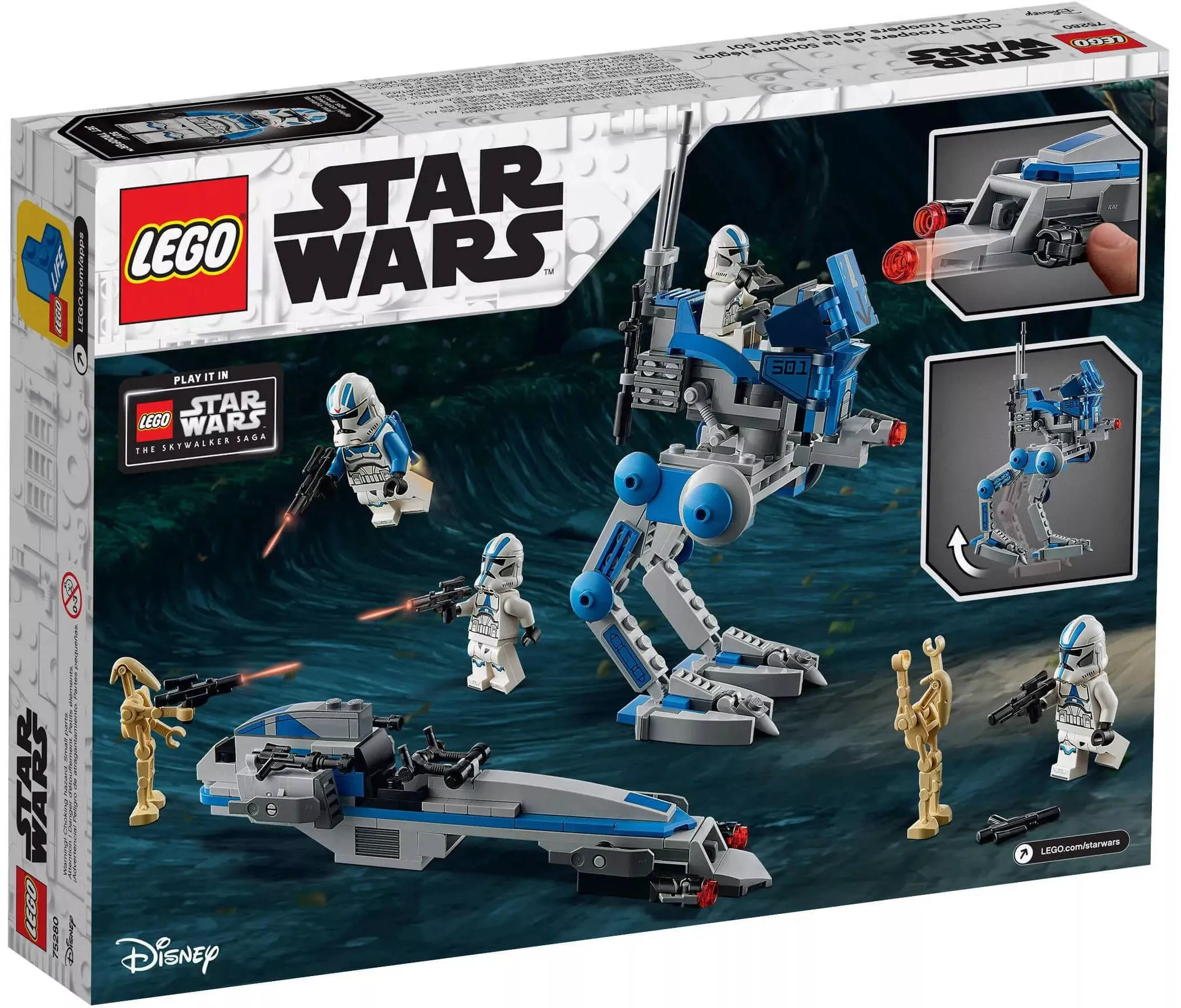 Набор включает в себя детализированные боевые машины и минифигурки клонов-пехотинцев, что позволяет воссоздавать сцены из фильмов и мультсериалов, а также придумывать свои собственные приключения в далекой-далекой галактике.