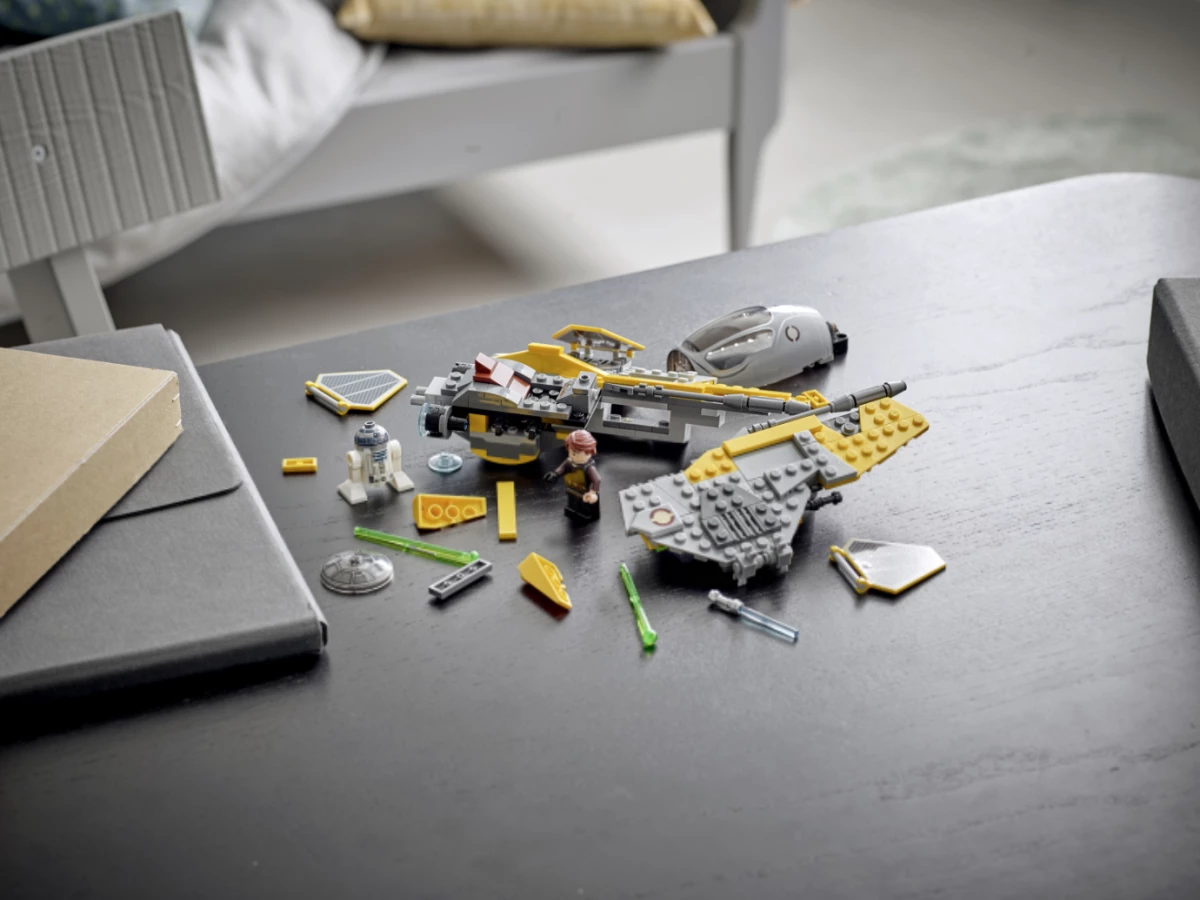 Набор включает в себя джедайский перехватчик с множеством интересных функций, а также минифигурки Энакина и его верного дроида R2-D2. Благодаря этому набору дети могут погружаться в захватывающие игры, создавая свои собственные истории и воссоздавая сцены из фильмов.