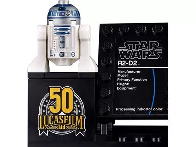 Вместе с этой классной моделью для сборки вы можете построить подставку для отображения с информационной табличкой, фигурой дроида R2-D2 LEGO и особым кубиком LEGO в честь 50-летнего юбилея студии Lucasfilm. Она дополнит образ шлема, украшающего интерьер вашего дома или рабочего места.
